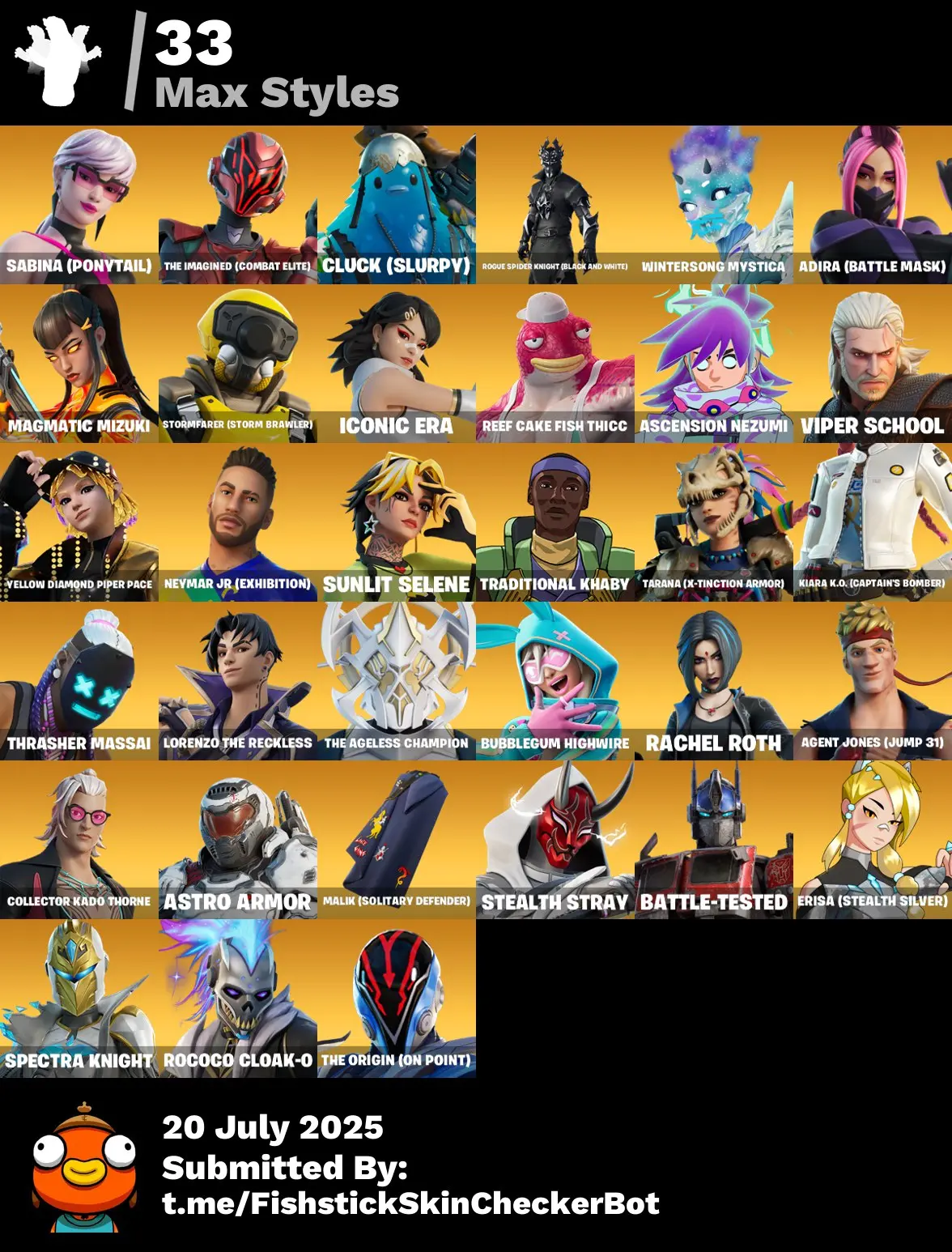 ⚡ 79 Skins [PC/XBOX] 🕷️ Rogue Spider Knight 🌠 The Imagined 🗡️ Spire Assassin 🚛 Optimus Prime 🌀 Malik 💫 Kado Thorne 🌙 Nezumi 🏷️ FTN132