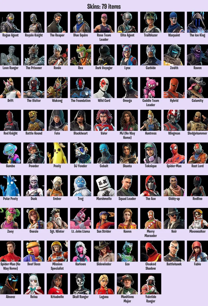 79 Skins|OG STW|Rogue Agent|Royale Knight|The Reaper|Blue Squire|Rose Team Leader|Elite Agent|Trailblazer|Warpaint|The Ice King|Love Ranger