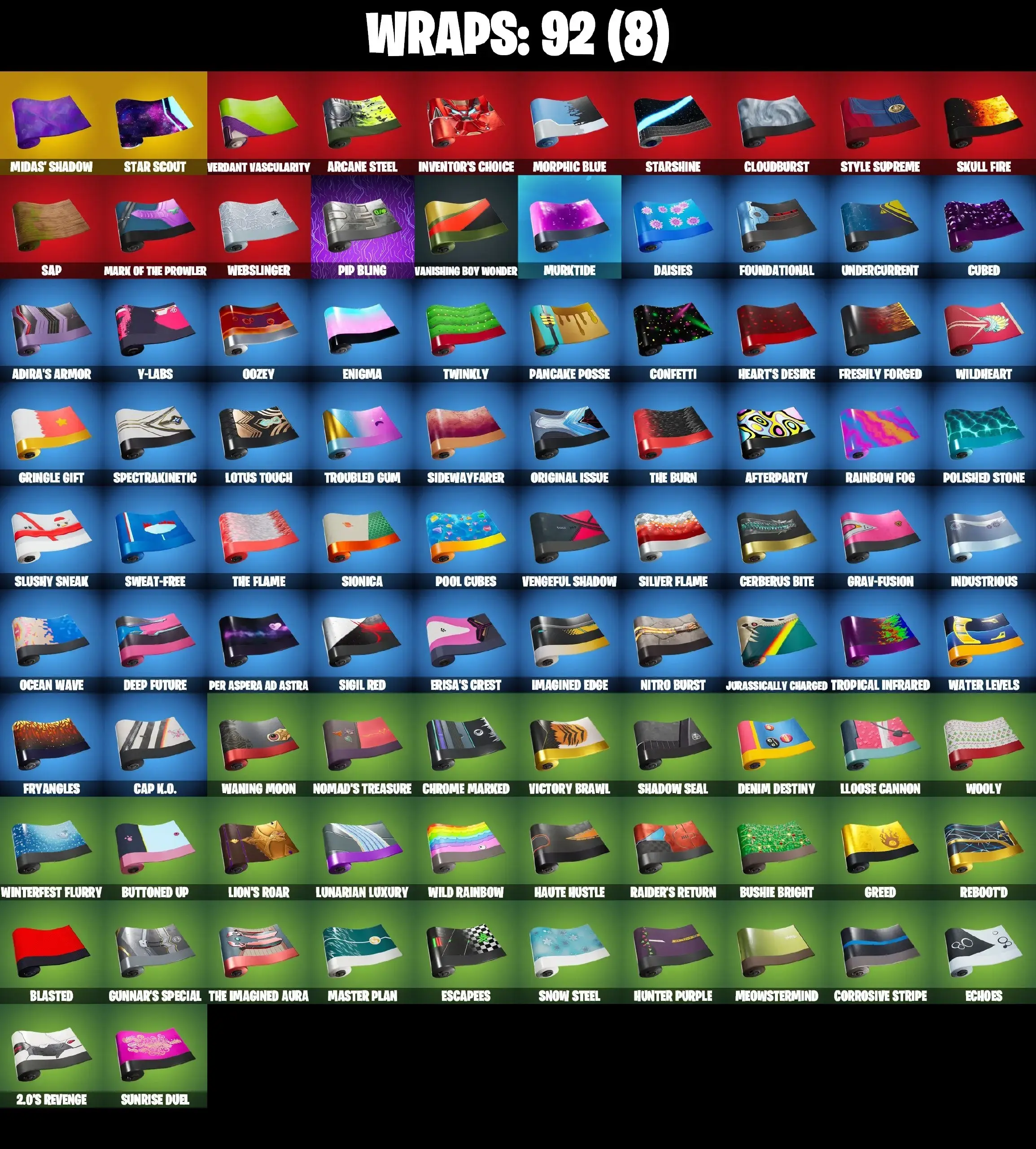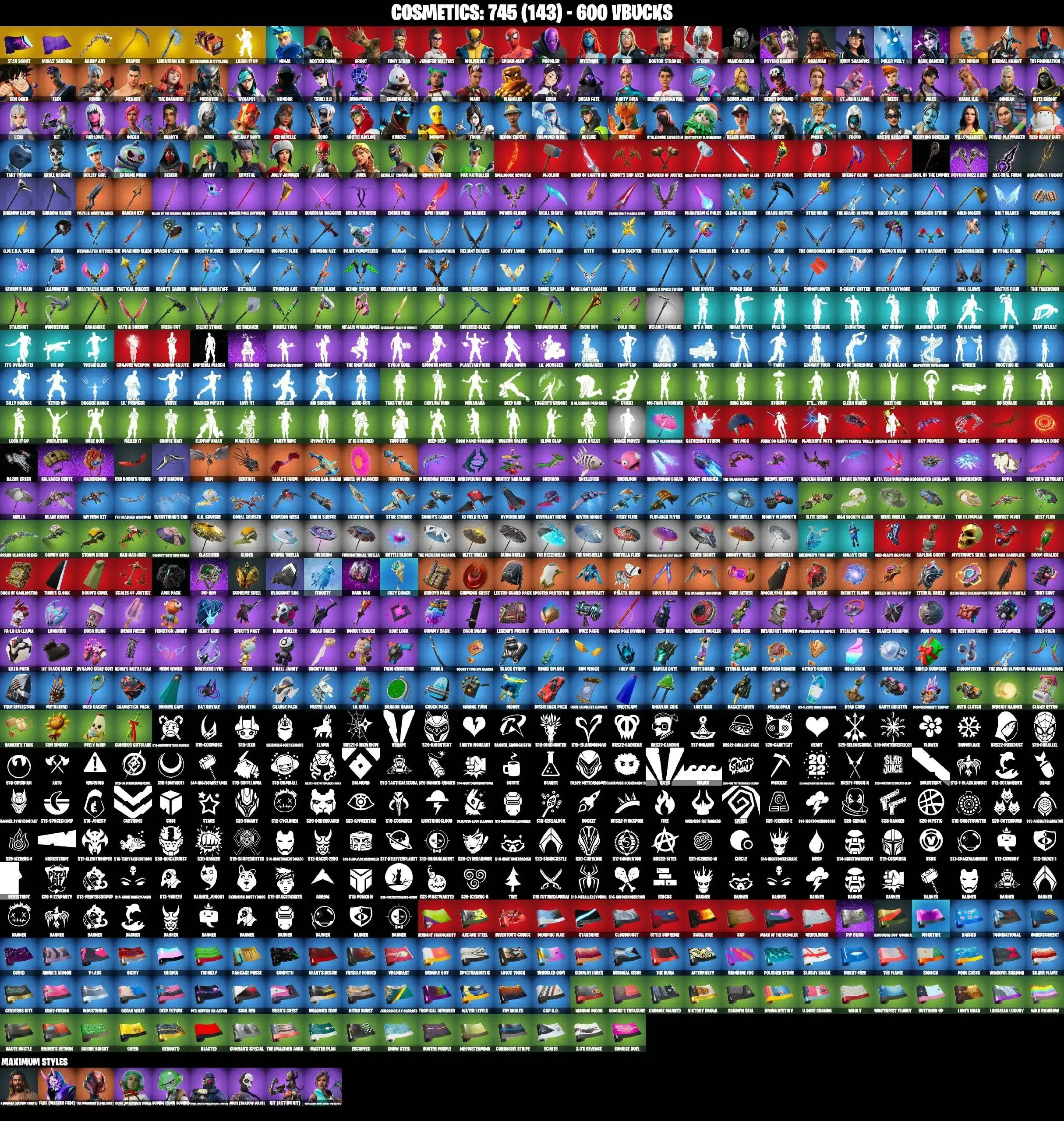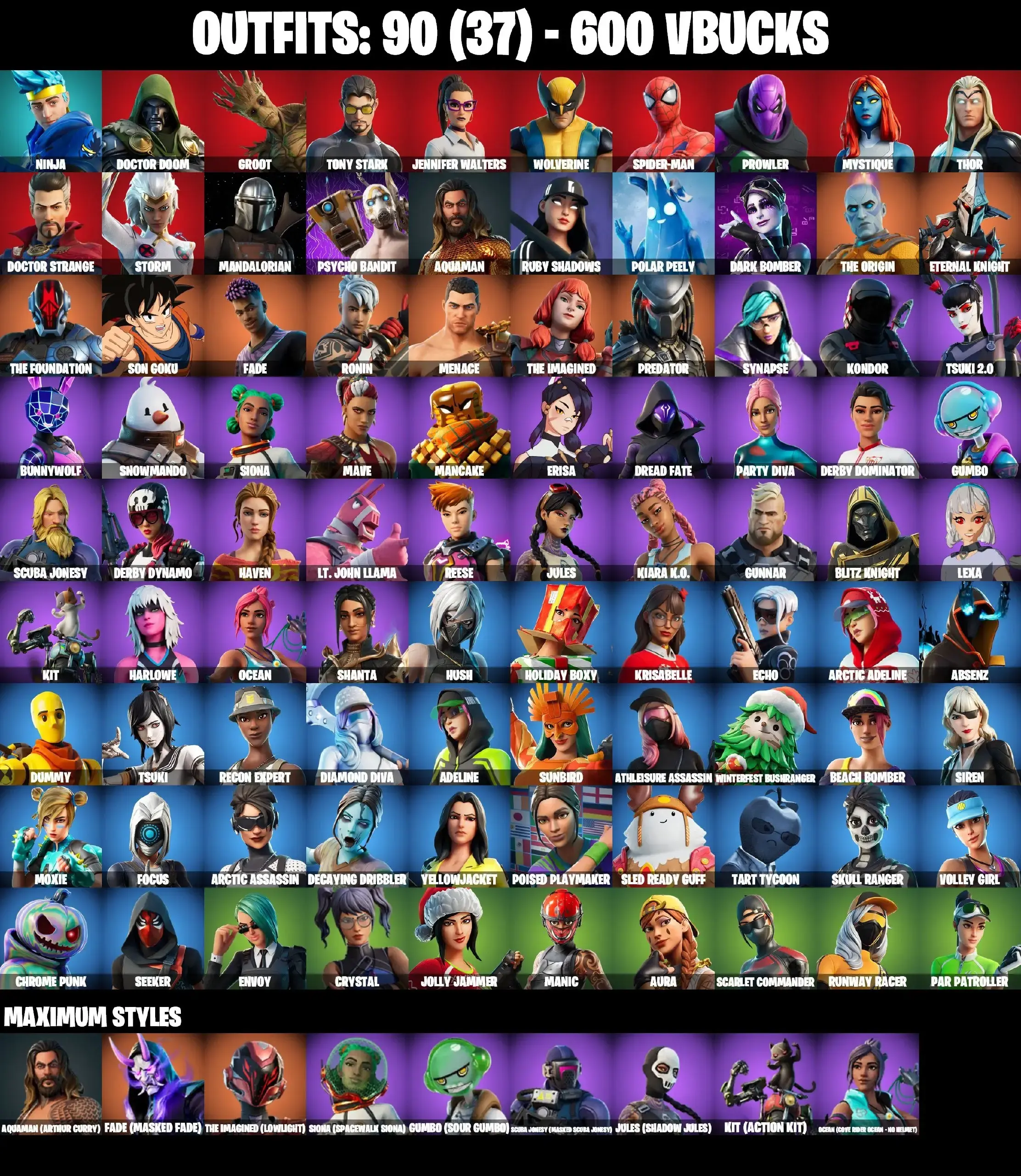 90 SKINS | LEVIATHAN AXE | PSYCHO BANDIT | MANDALORIAN | DERBY DYNAMO | GET GRIDDY | SPIDER-MAN | LAUGH IT UP | BTS EMOTE | CANDY AXE | STAR WAND | SON GOKU | SKULL RANGER | DUMMY | JULES MAX | TSUKI | AURA | POISED PLAYMAKER | PA