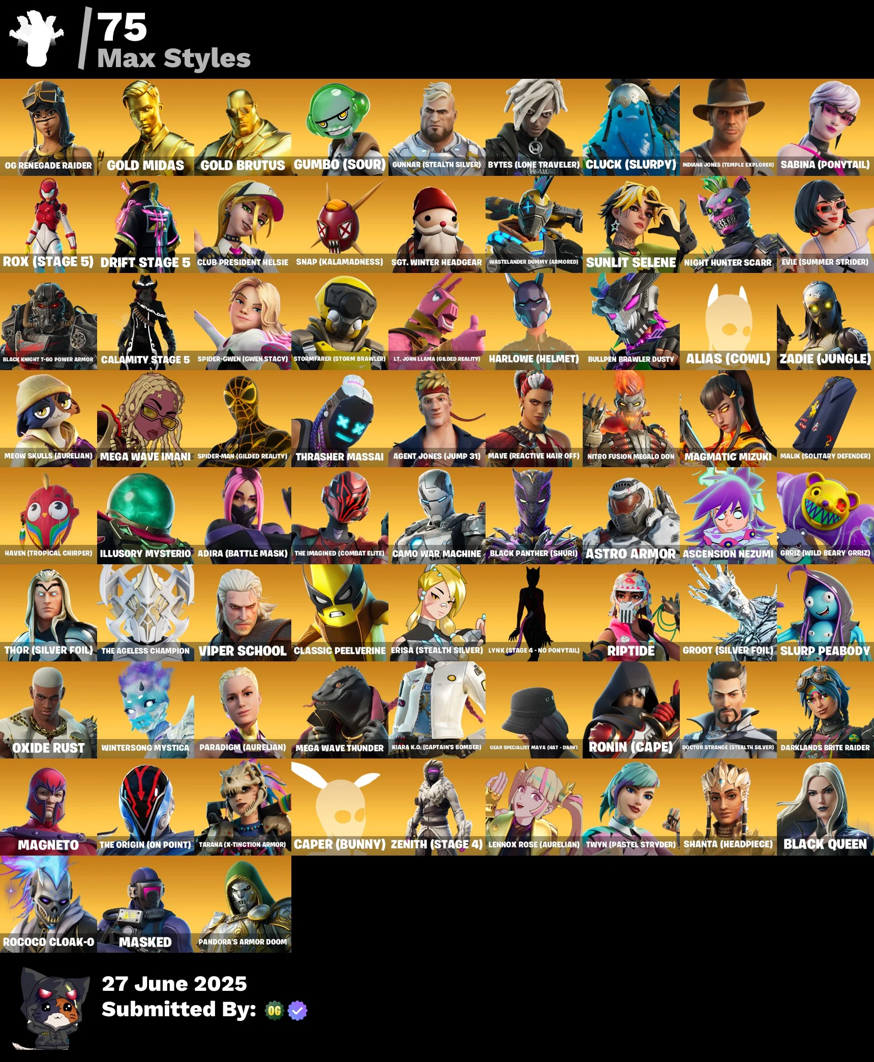 🎉🔥 EXCLUSIVE DEAL 🔥🎉 213 SKINS 💎 OG RENEGADE RAIDER 💎 BLACK KNIGHT 💎 WONDER 💎 HONOR GUARD 💎 TRAVIS SCOTT 💎 SPARKLE SPECIALIST 💎 ASTRO JACK 💎 BLUE SQUIRE 💎 ROYALE KNIGHT 💎 GOLD MIDAS 💎 GOLD BRUTUS 💎 SPIDER-MAN 💎 EMMA FROST 💎 TONY STARK ⚡️PC/PSN/XBOX⚡️