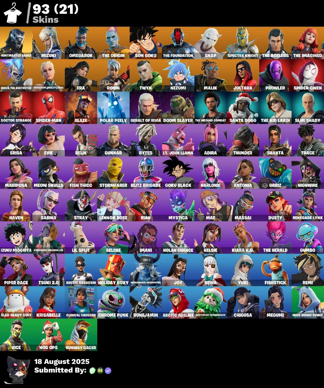 🎉🔥 EXCLUSIVE DEAL 🔥🎉 93 SKINS 💎 HUNTMASTER SABER 💎 MIZUKI 💎 OMEGAROK 💎 THE ORIGIN 💎 SON GOKU 💎 THE FOUNDATION 💎 SNAP 💎 SPECTRA KNIGHT 💎 THE AGELESS ⚡️PC/PSN/XBOX⚡️
