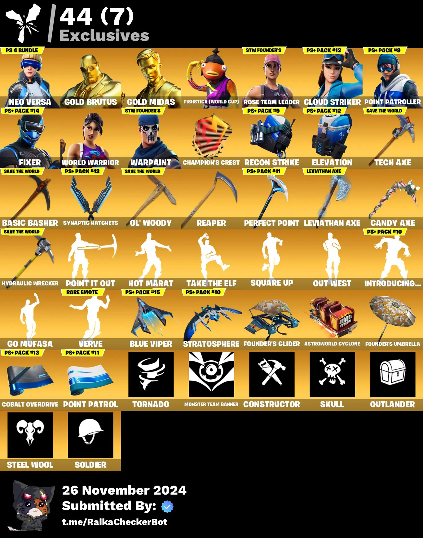 ⭐ Inactive for 4 years | Mail changenable | 179 Skins | OG STW | leviathan axe | Neo Versa | Gold Brutus | Gold Midas | Fishstick (World Cup) | Cloud Striker | Point Patroller | Fixer | World Warrior | 0 VB