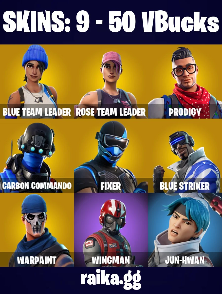 🔴♦️ LIMITED OFFER ♦️🔴 9 skins 💎 OG STW 💎 Blue Team Leader 💎 Prodigy 💎 Carbon Commando 💎 Fixer 💎 Blue Striker 💎 Wingman 💎 Jun-Hwan 💎 Reckoning 💎 Blue Shift 💎 Pursuit 💎 Tabulator 💎 Carbon Pack 💎 Skirmish 💎 PC\PSN\XBOX\SWITCH 💎