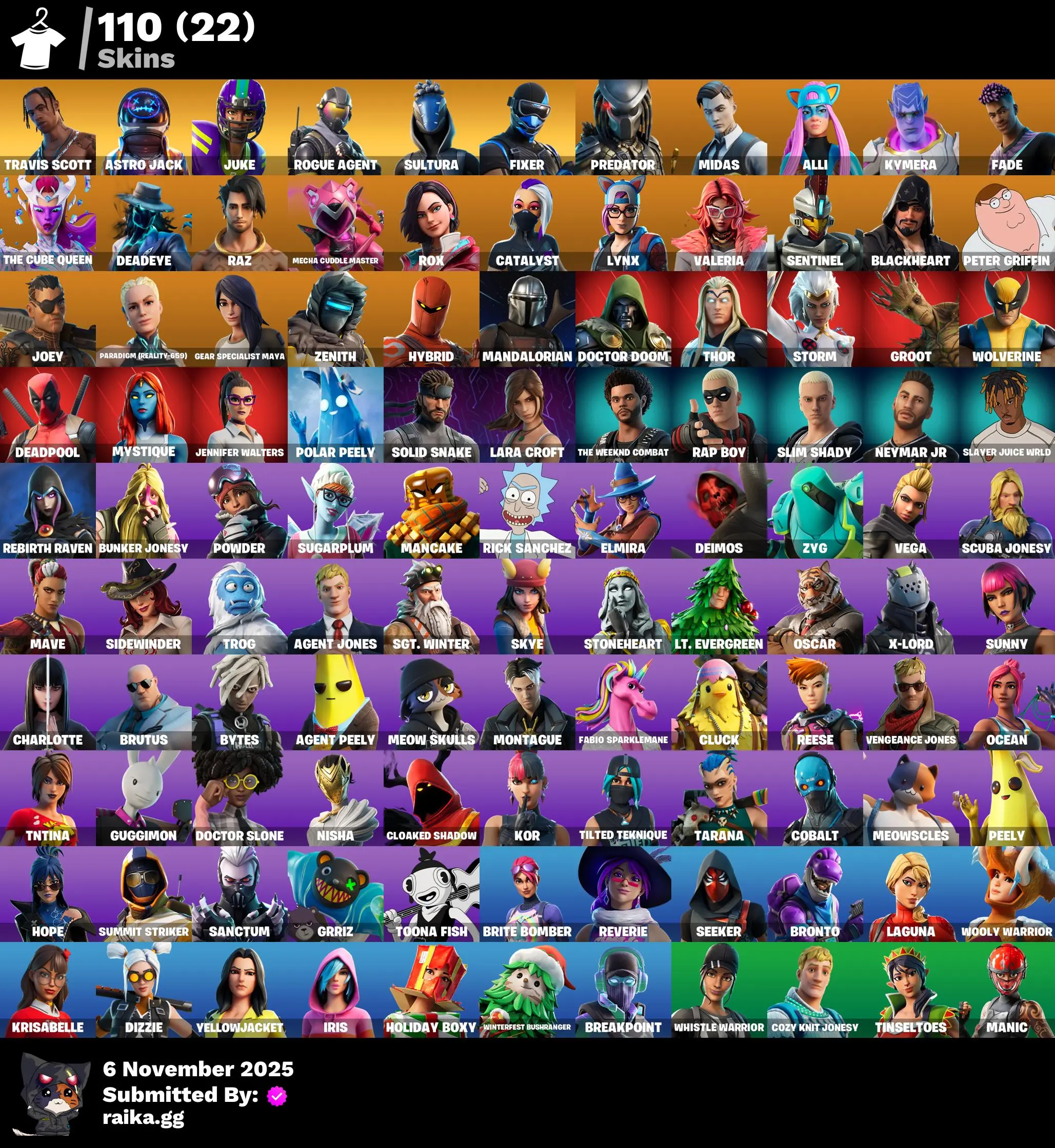 [PC] 110 skins | Travis Scott | Astro Jack | Juke | Rogue Agent | Sultura | Fixer | Predator | Midas | Alli | Kymera | Fade | The Cube Queen | 200 VB