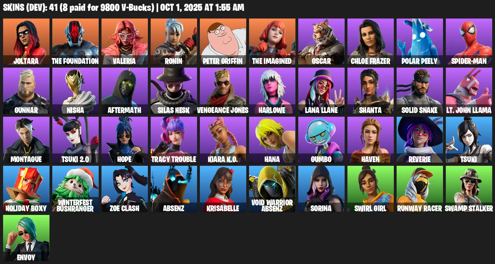 PC 41 Skins⚡ | Joltara | The Foundation | Valeria | Ronin | Peter Griffin | The Imagined | Oscar | Chloe Frazer | Polar Peely | Spider-Man | Gunnar | Nisha