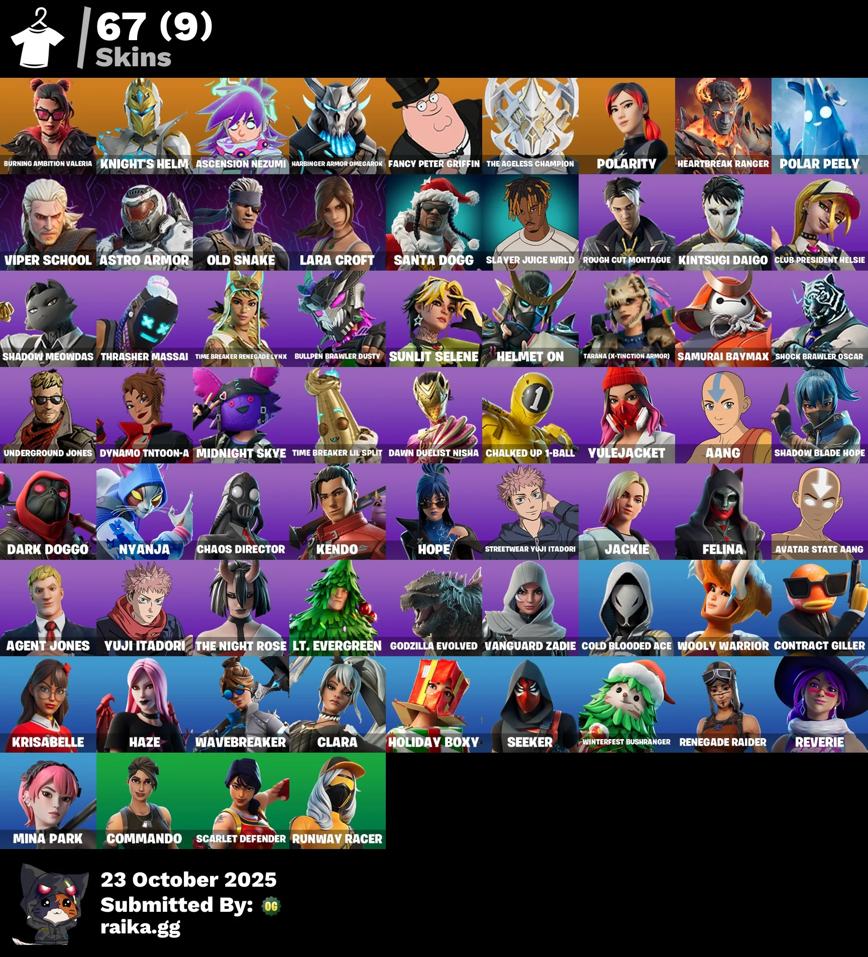 [PC] 67 skins | Lara Croft | Get Griddy | Renegade Raider | Burning Ambition Valeria | Knight's Helm mssh864