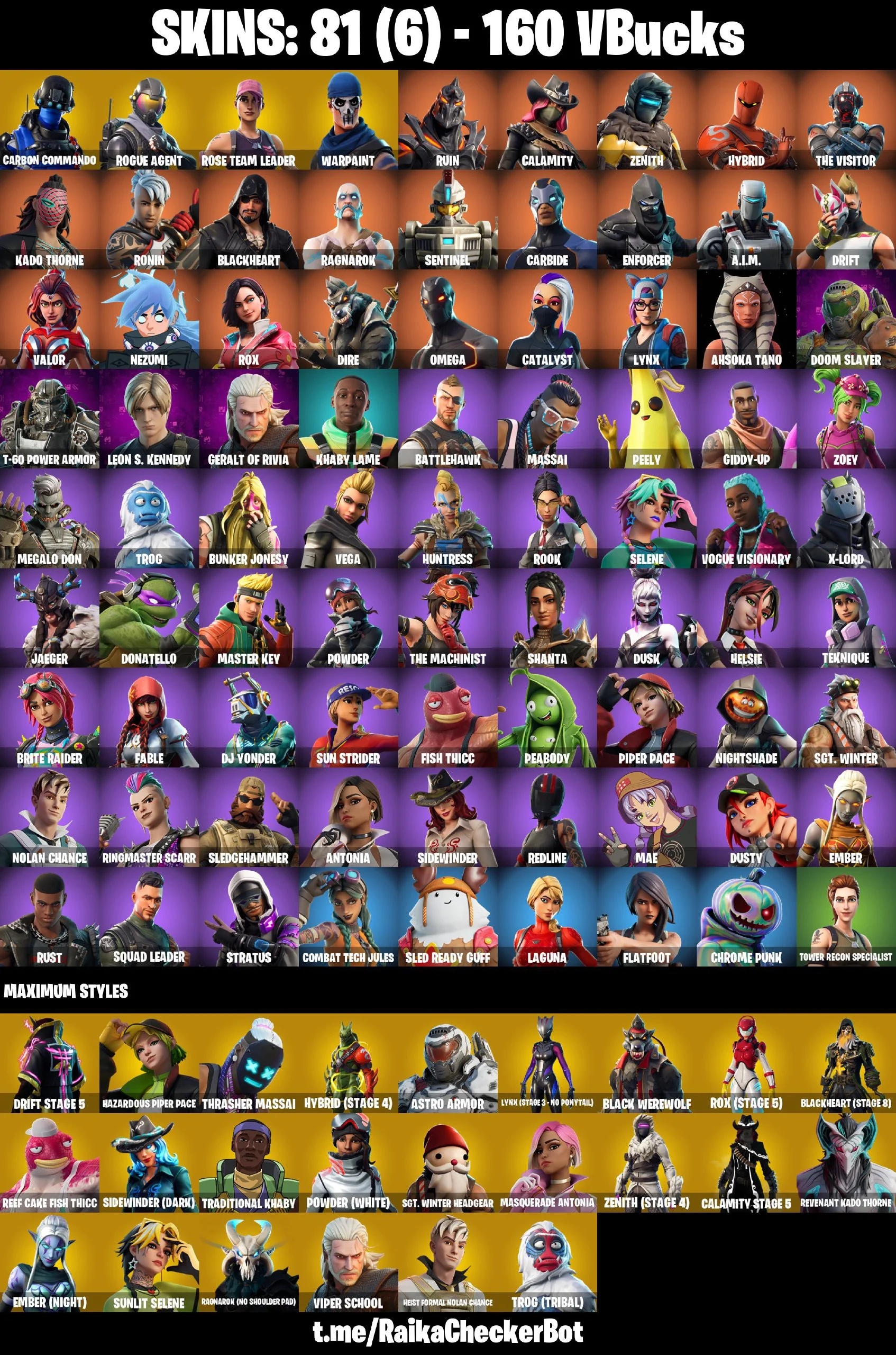 [PC] 🔥 81 ⭐️ skins 🔷 Mako ⭐️ Carbon Commando ⭐️ Rogue Agent ⭐️ Ruin ⭐️ Calamity ⭐️ Zenith ⭐️ Hybrid ⭐️ The Visitor ⭐️ Kado Thorne ⭐️ Ronin ⭐️ Mako ⭐️ Carbon Commando ⭐️ Rogue Agent