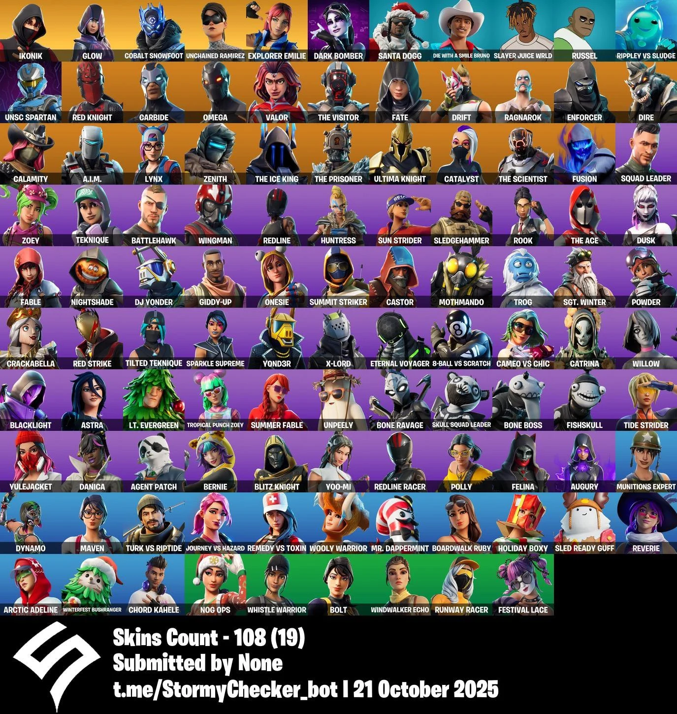 [PC] | 108 Skins | IKONIK | Glow | Cobalt Snowfoot | Explorer Emilie | Unchained Ramirez | Indigo Inverter | Default Pickaxe | Reaper | 100 VB