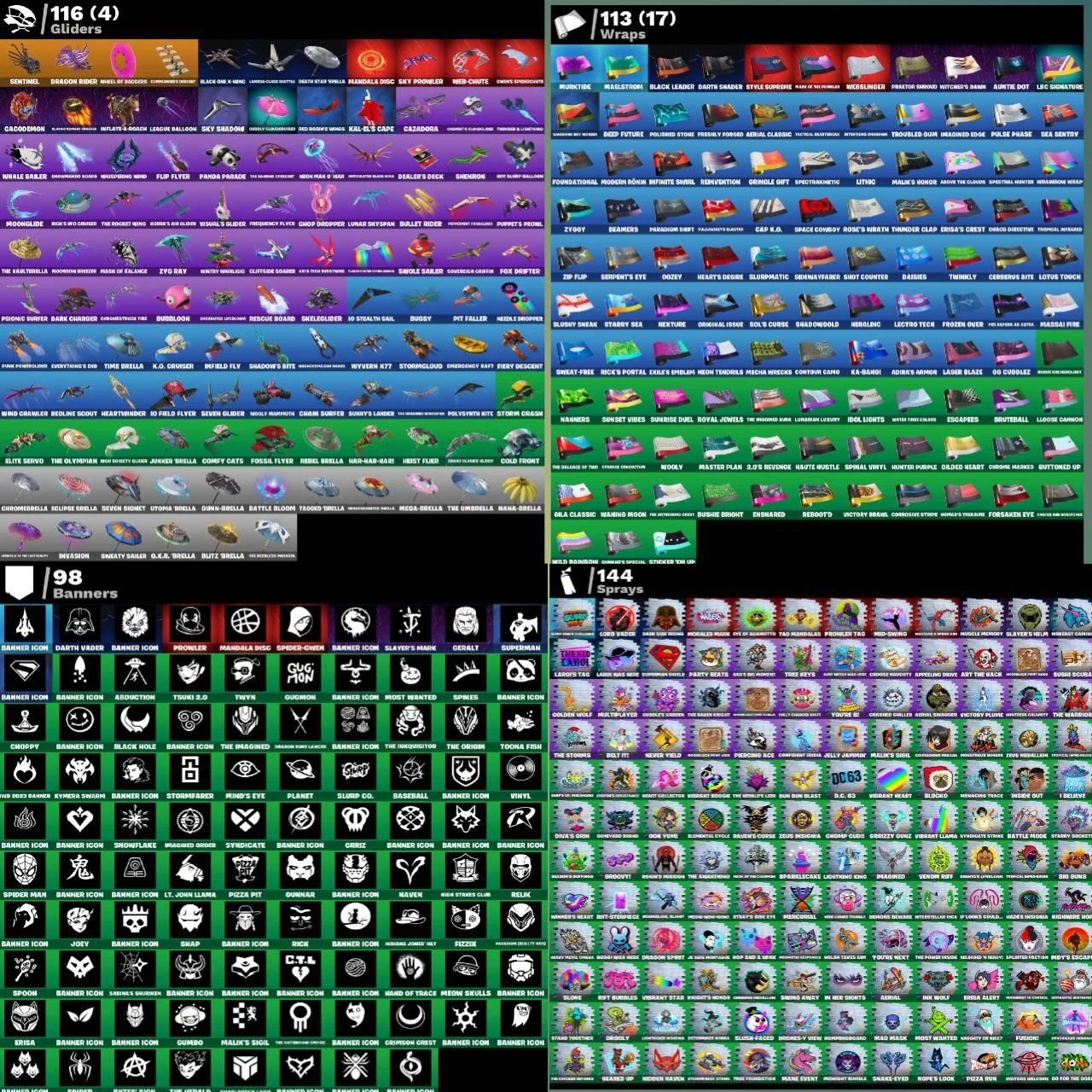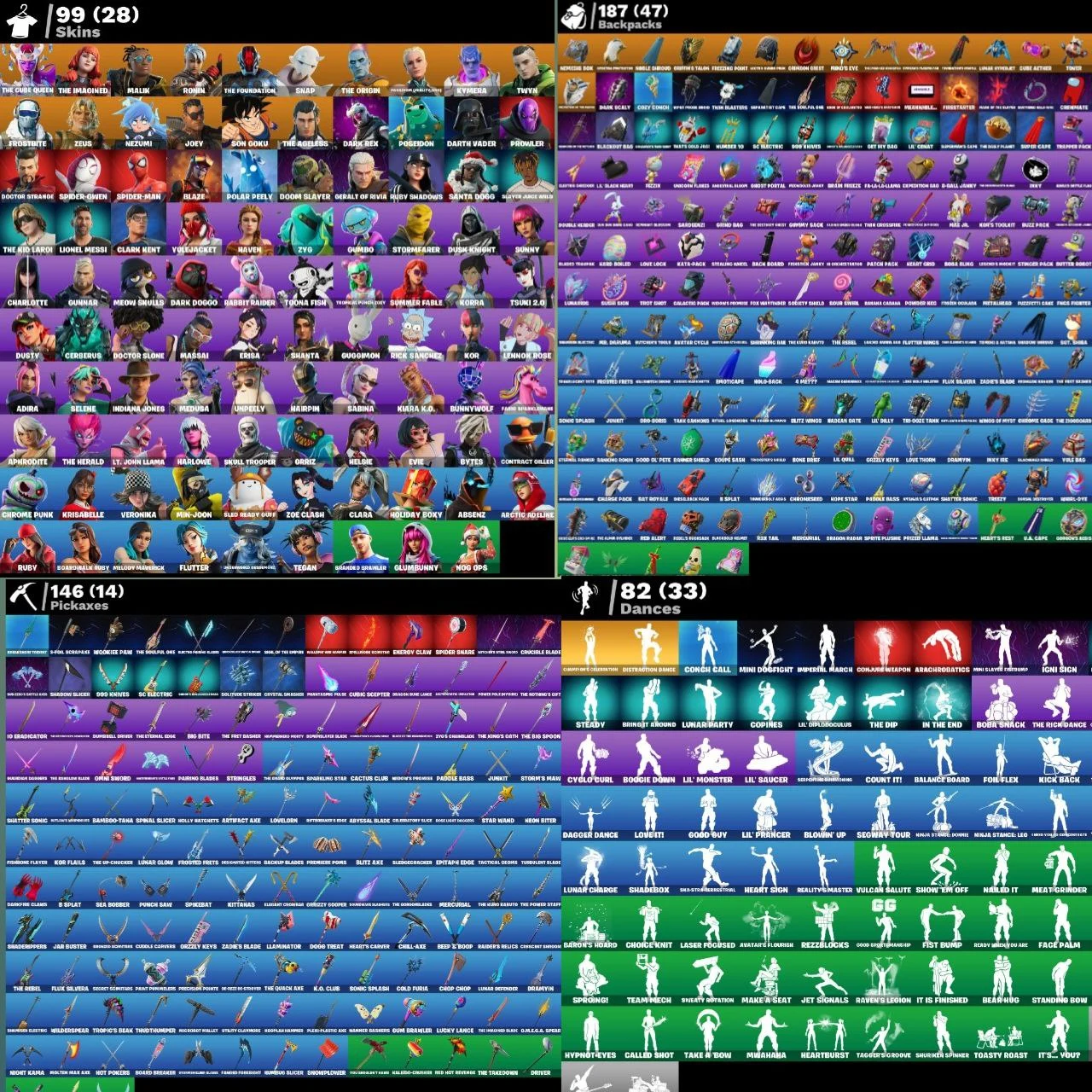 🗿( PC)ACCOUNT LEVEL 1720👺 99 SKINS🍁8 BR PASS🤯99 OUTFITS🫡187 BACKPACKS😎82 DANCES💀146 PICKAXES♥️98 BANNERS🎃144 SPRAYS🥵2 EXCLUSIVE 🤣OP ACC🥶