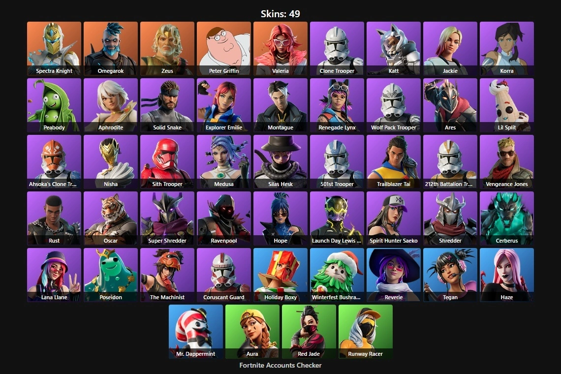 PC/PSN 49 Skins⚡ | Spectra Knight | Omegarok | Zeus | Peter Griffin | Valeria | Clone Trooper | Katt | Jackie | Korra | Peabody | Aphrodite | Solid Snake