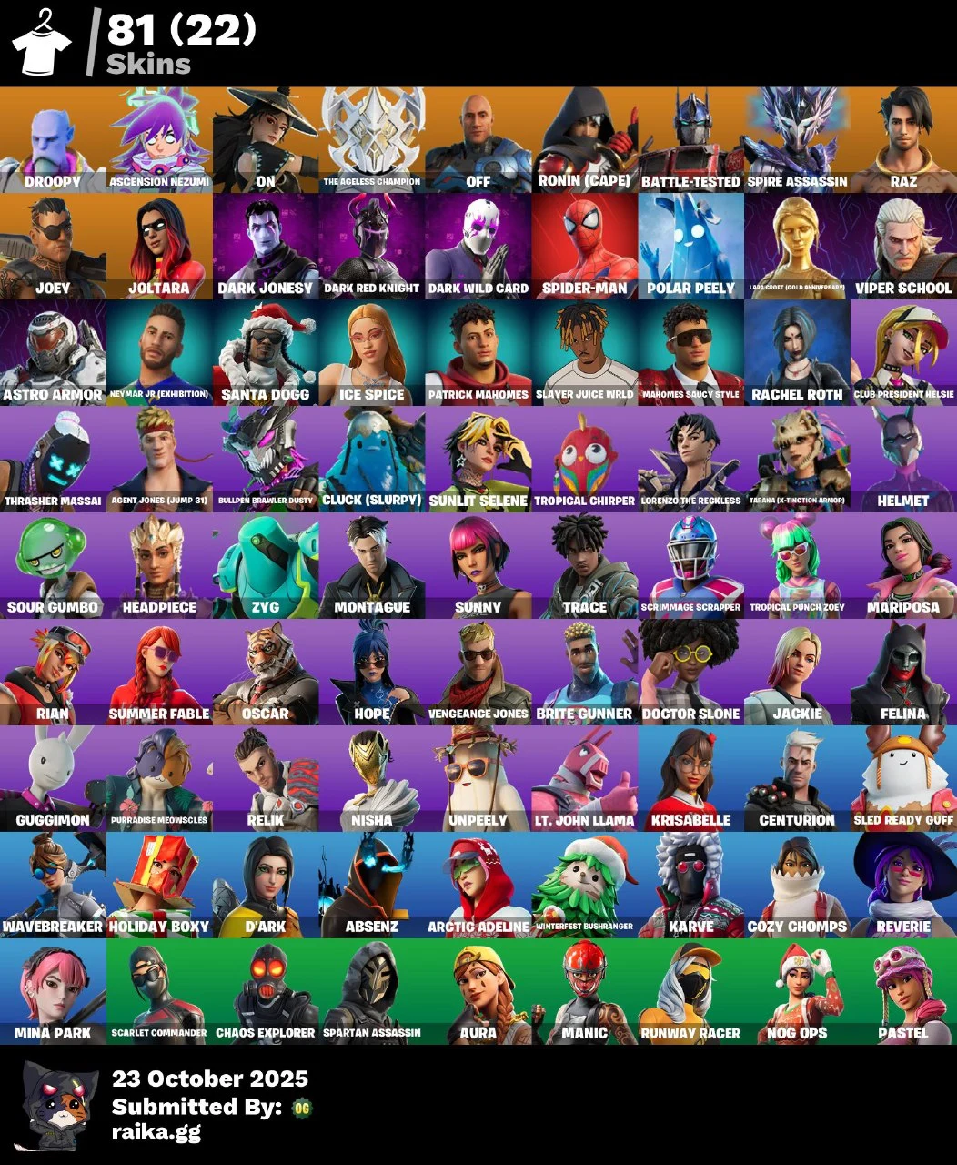 [PC/PSN] 81 skins | Aura | Go Mufasa | Candy Axe | Jabba Switchway | Star Wand | Laugh It Up | Get Griddy mssh850
