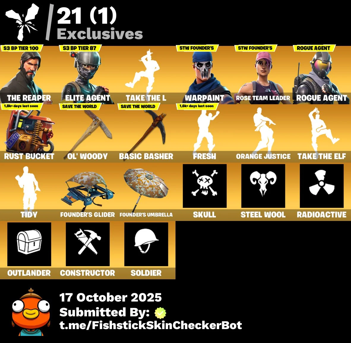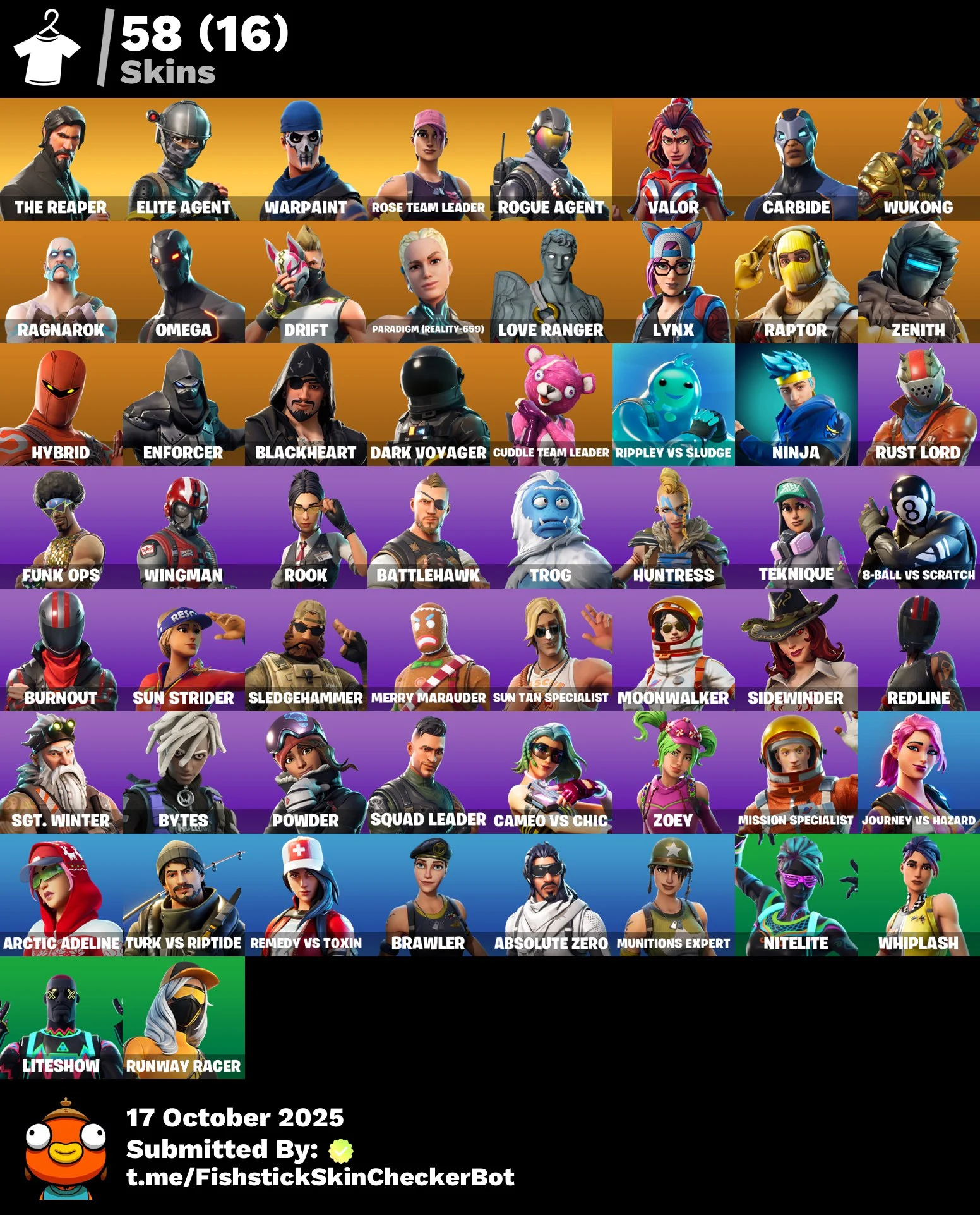 [PC/PSN/NINTENDO] 58 skins | OG STW | The Reaper | Elite Agent | Take The L | Rogue Agent | Valor | Carbide | Wukong | Ragnarok | Omega | Drift | Paradigm (Reality-659) | 750 VB