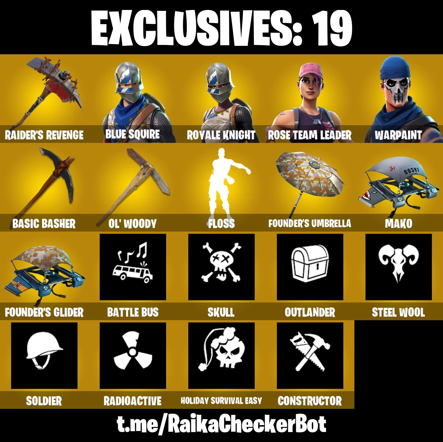 [PC/PSN/XBL/NINTENDO] 8 Skins 🔥 Raiders Revenge Axe 🔥 Blue Squire 🔥 Royale Knight 🔥 OG STW 🔥 Floss 🔥 Mako