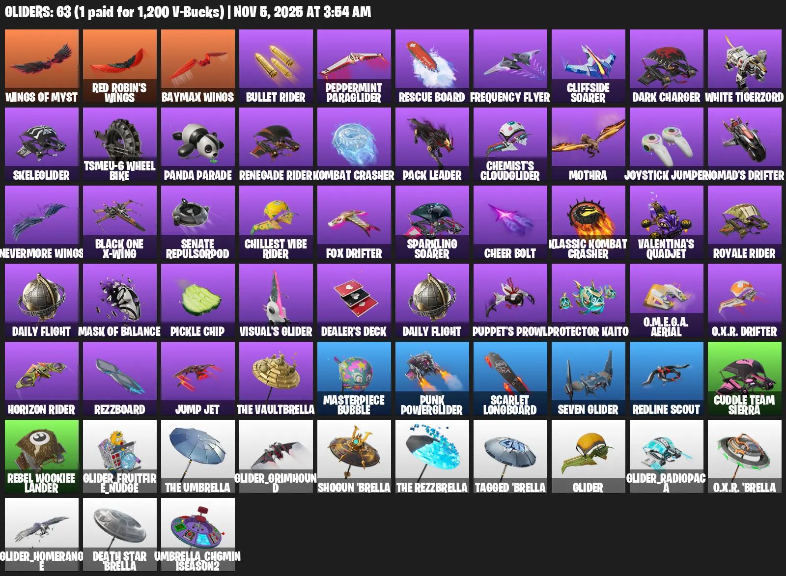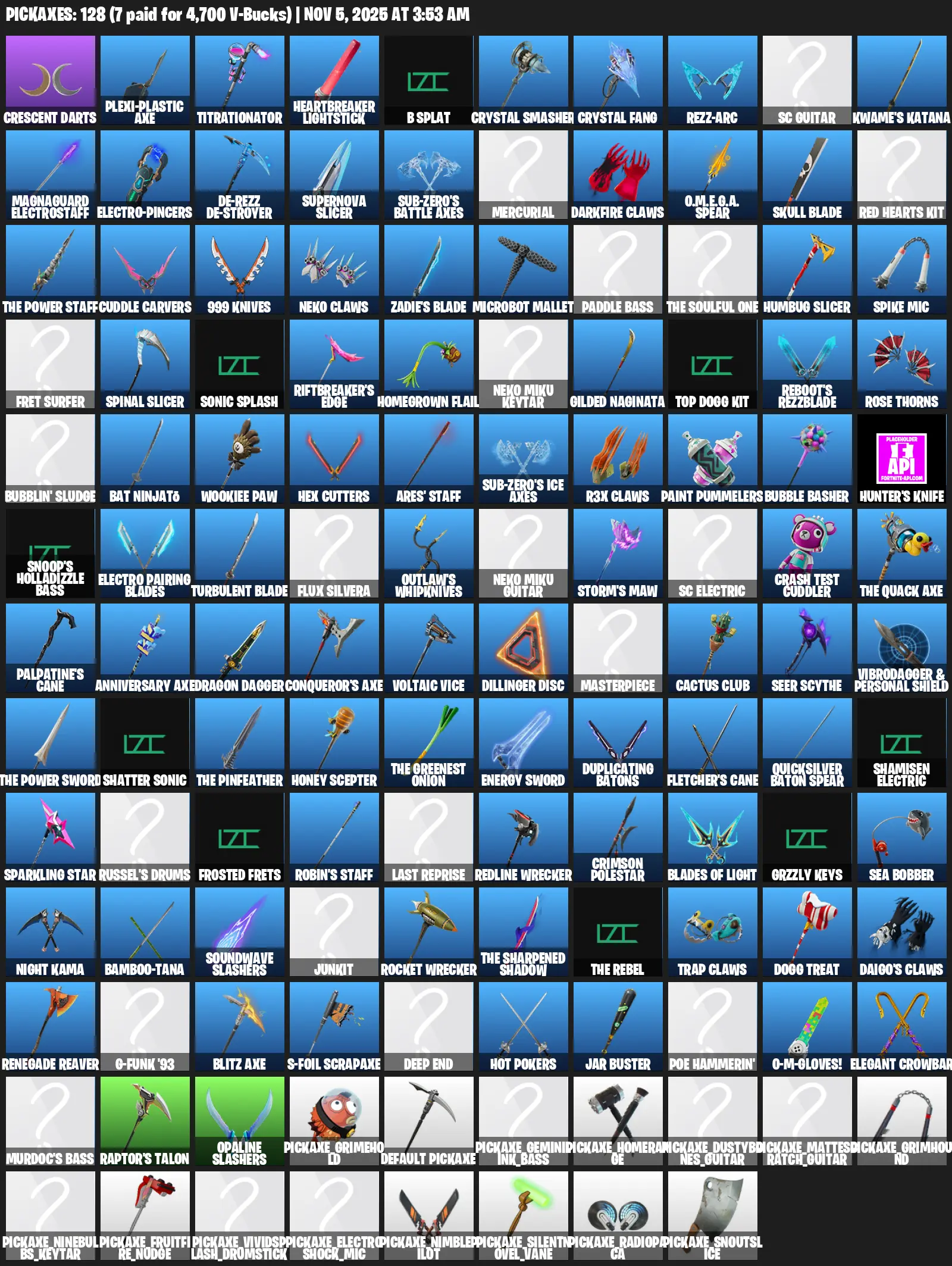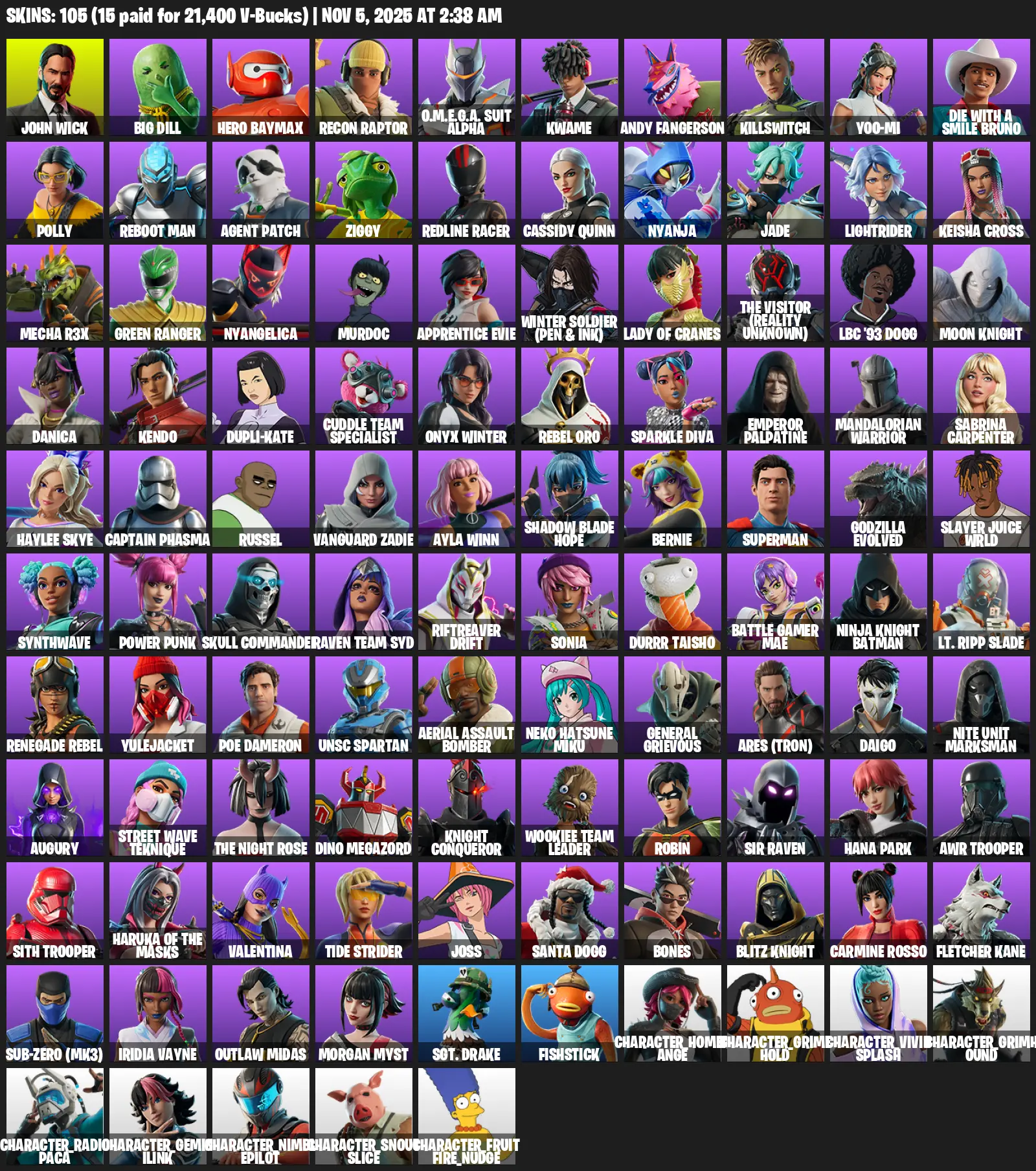 [PC/PSN/XBOX] 105 skins | Account Level 1282 | 113 emotes | 63 gliders | 128 pickaxes | ares | Skin total spent v-bucks 40100