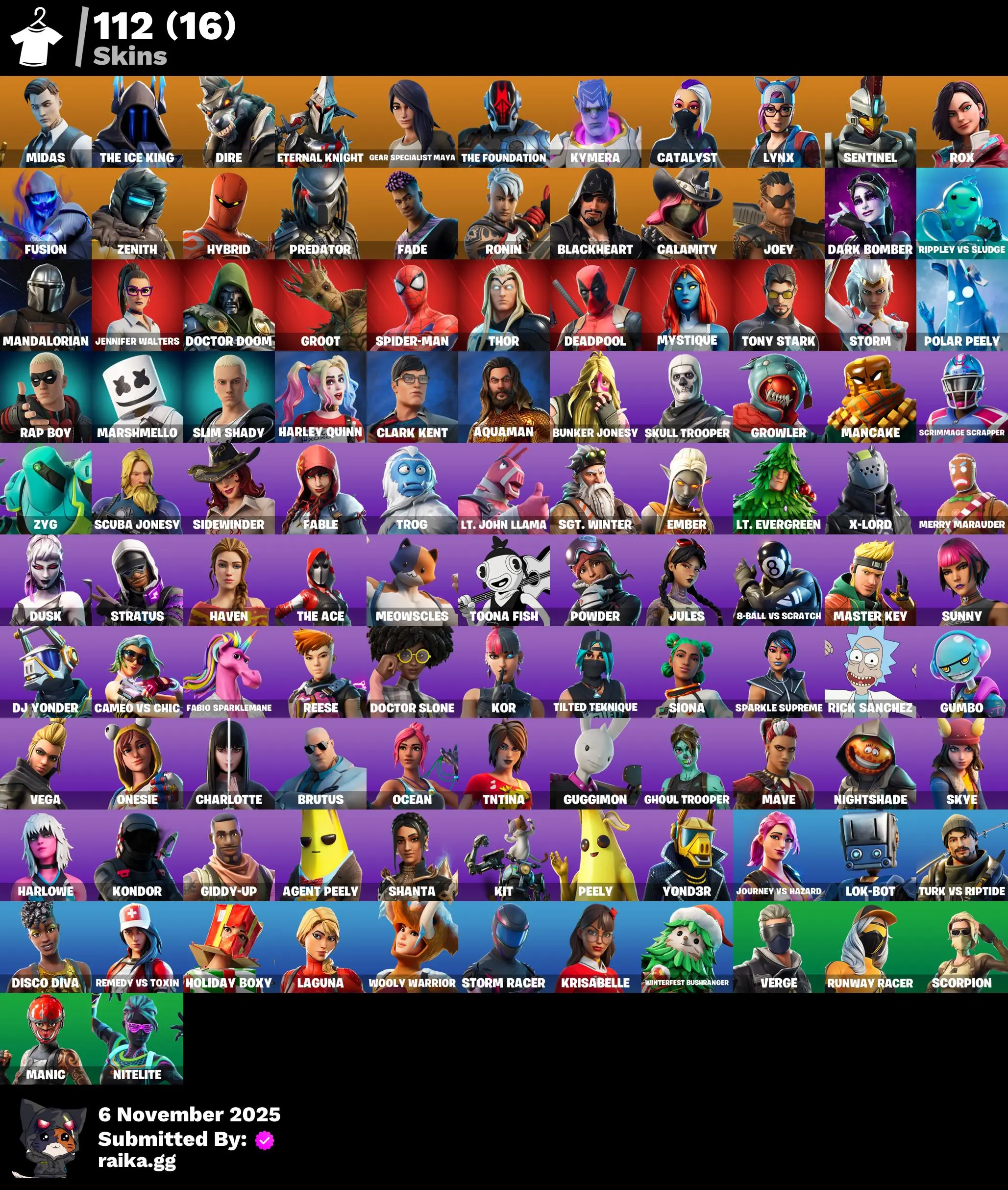 [PC/PSN/XBOX] 112 skins | Midas | The Ice King | Dire | Eternal Knight | Gear Specialist Maya | The Foundation | Kymera | Catalyst | Lynx | Sentinel | Rox | 0 VB