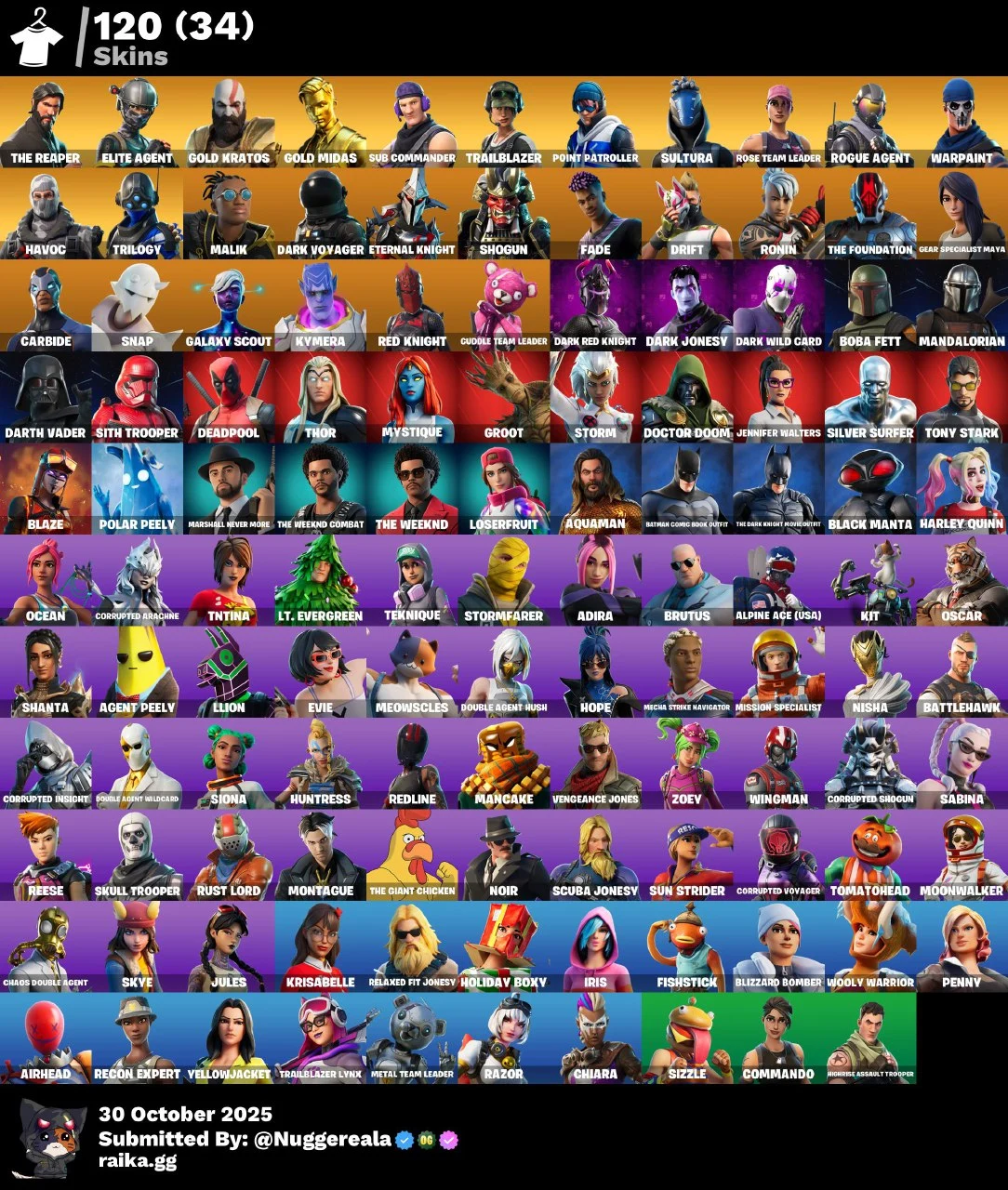 [PC/PSN/XBOX] 120 skins | OG STW | The Reaper | Elite Agent | Gold Kratos | Gold Midas | Sub Commander | Trailblazer | Point Patroller | Sultura | Rogue Agent | 250 VB