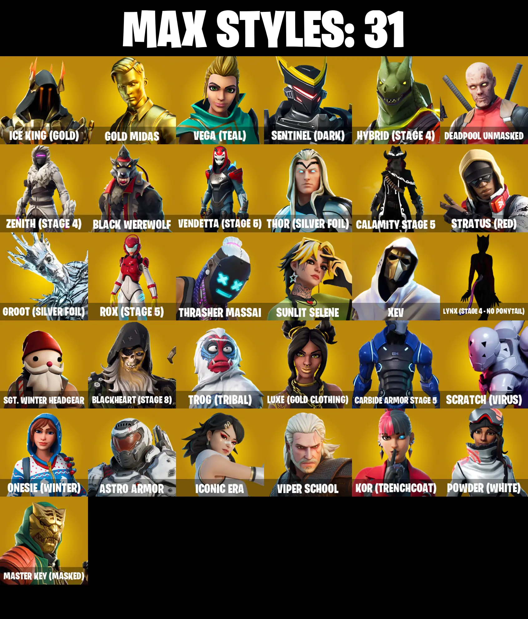 PC/PSN/XBOX ♨️133 skins ✨ OG STW ✨ Leviathan Axe ✨ Deadpool ✨ Gold Midas ✨ Candy Axe ✨ Omega ✨ Orange Justice ✨ Carbide ✨ Dire ✨ The Ice King ✨ #B752
