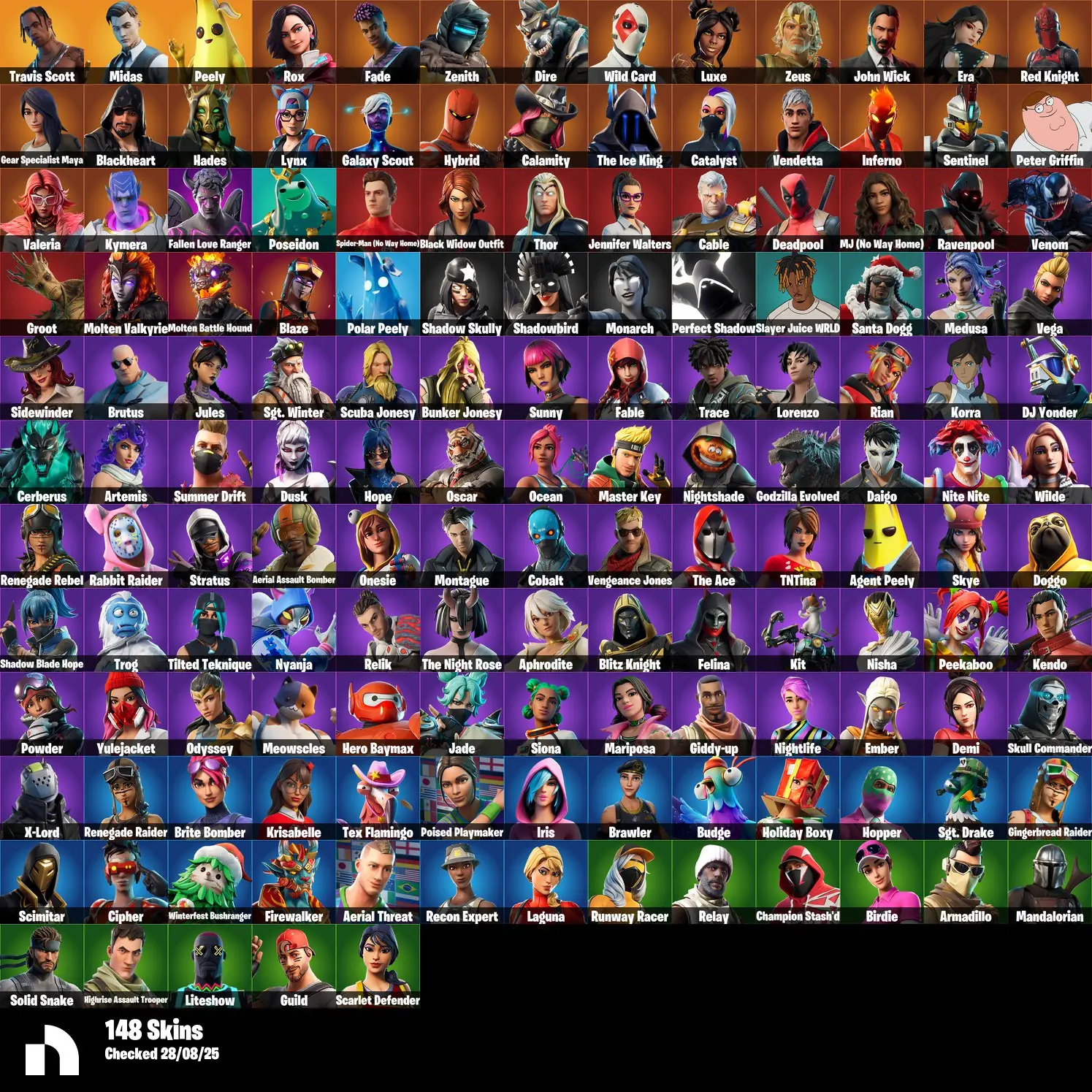[PC/PSN/XBOX] 148 Skins | Travis Scott | Midas | Peely | Cactus Jack | Galaxy Scout | Monarch | Shadow Skully | Take The Elf | 1550 VB ⸱ Parent Control