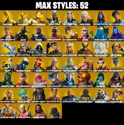 PC/PSN/XBOX ♨️160 skins 👑 Dark Vertex 👑 Lara Croft 👑 Deadpool 👑 Gold Midas 👑 Gold Brutus 👑 Gold Meowscles 👑 Reaper 👑 Jabba Switchway 👑 #B637