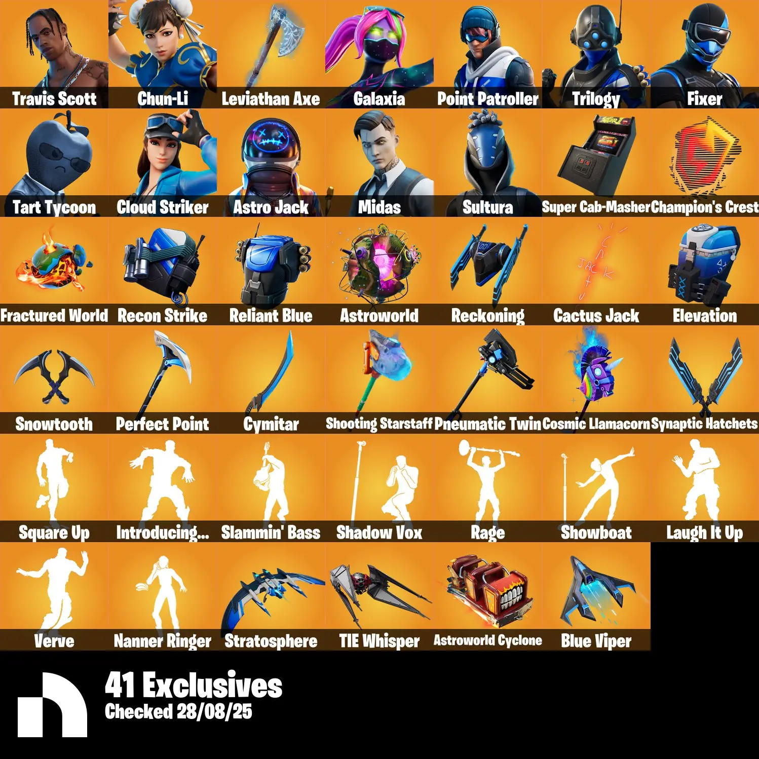 [PC/PSN/XBOX] 185 Skins | Travis Scott | Chun-Li | Leviathan Axe | Galaxia | Astro Jack | Trilogy | Fixer | Tart Tycoon | 530 VB ⸱ Parent Control