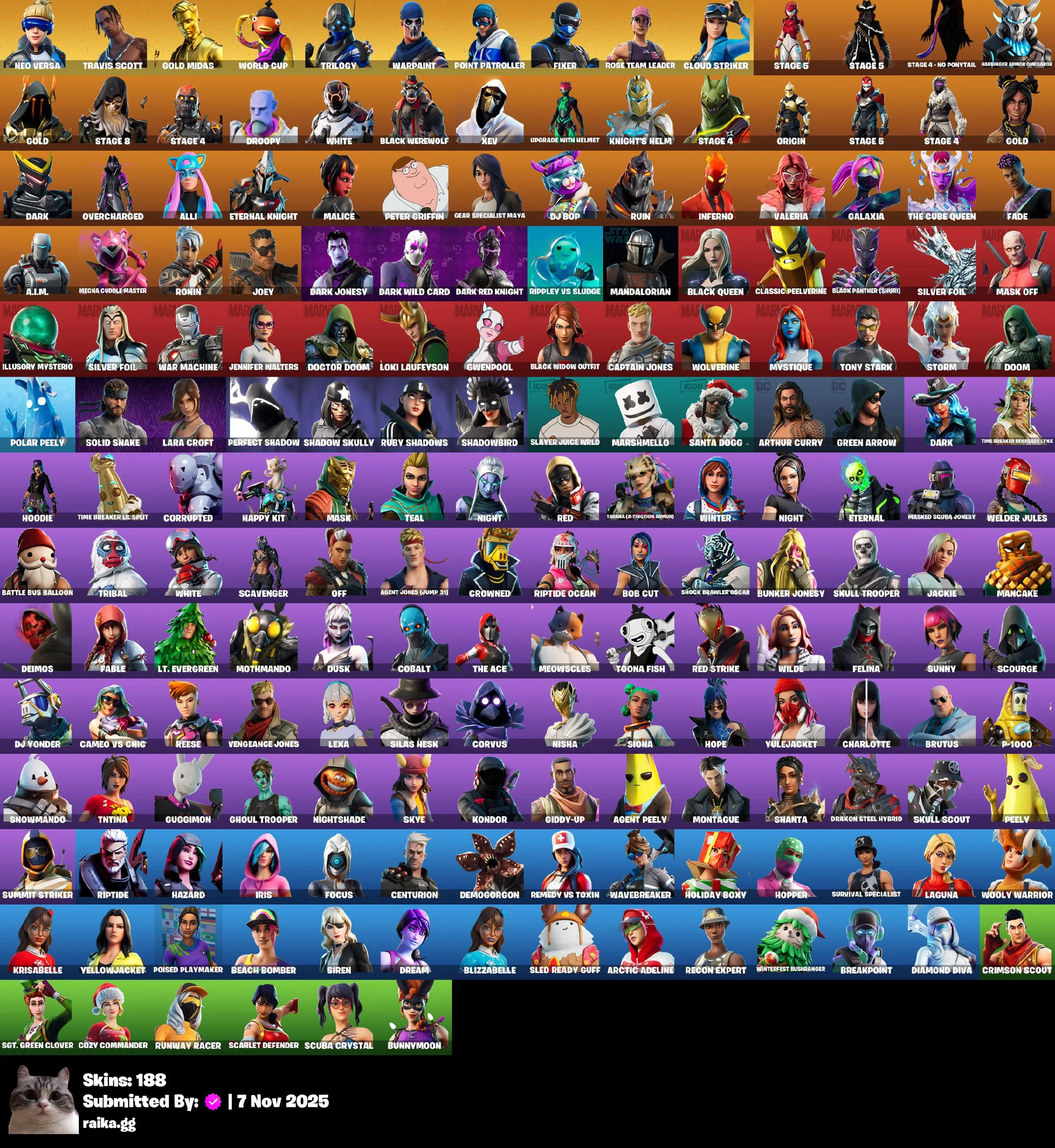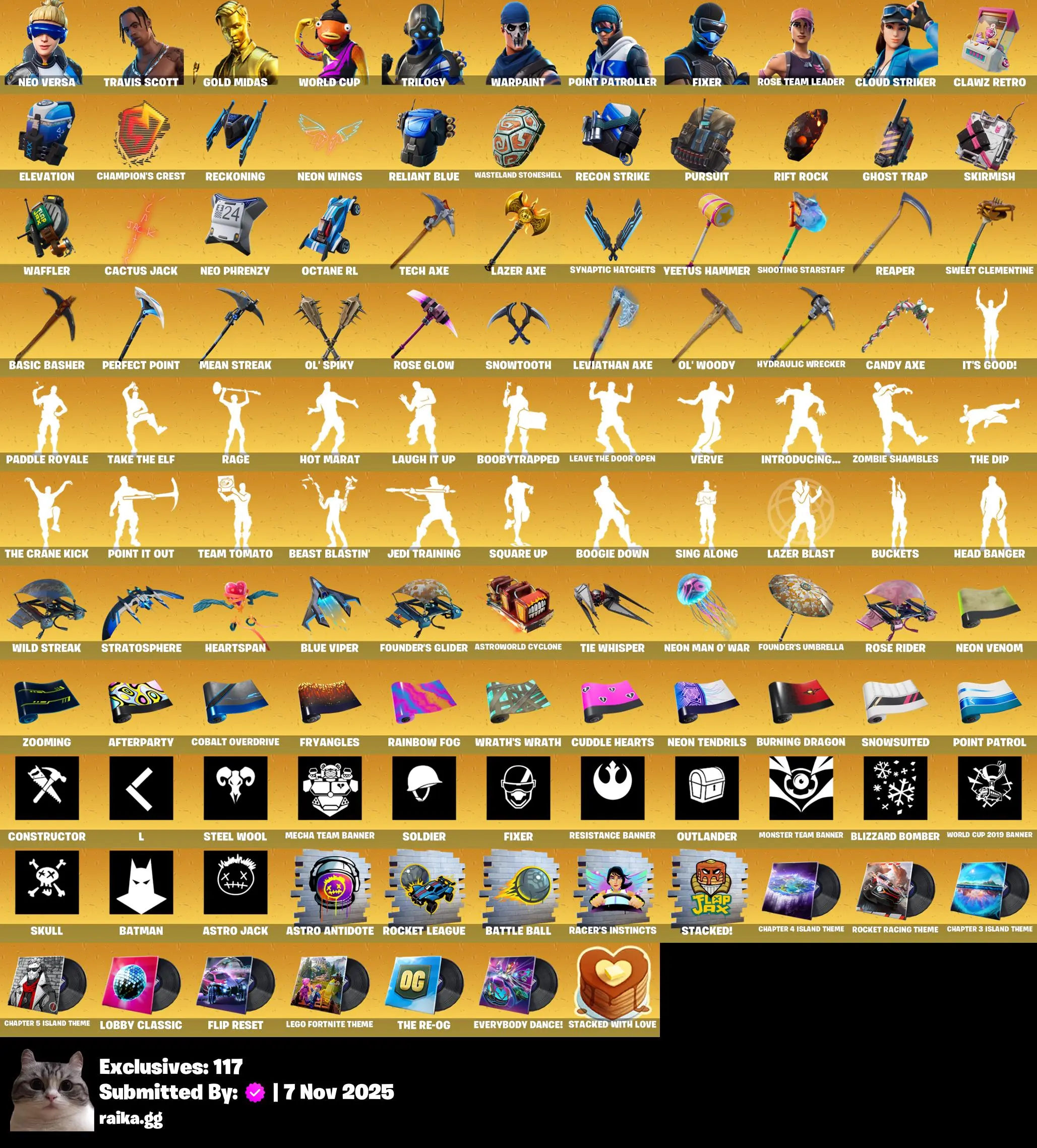 [PC/PSN/XBOX] 188 skins | OG STW | Neo Versa | Travis Scott | Leviathan Axe | Gold Midas | WORLD CUP | Trilogy | Point Patroller | Fixer | Cloud Striker | STAGE 5 | S