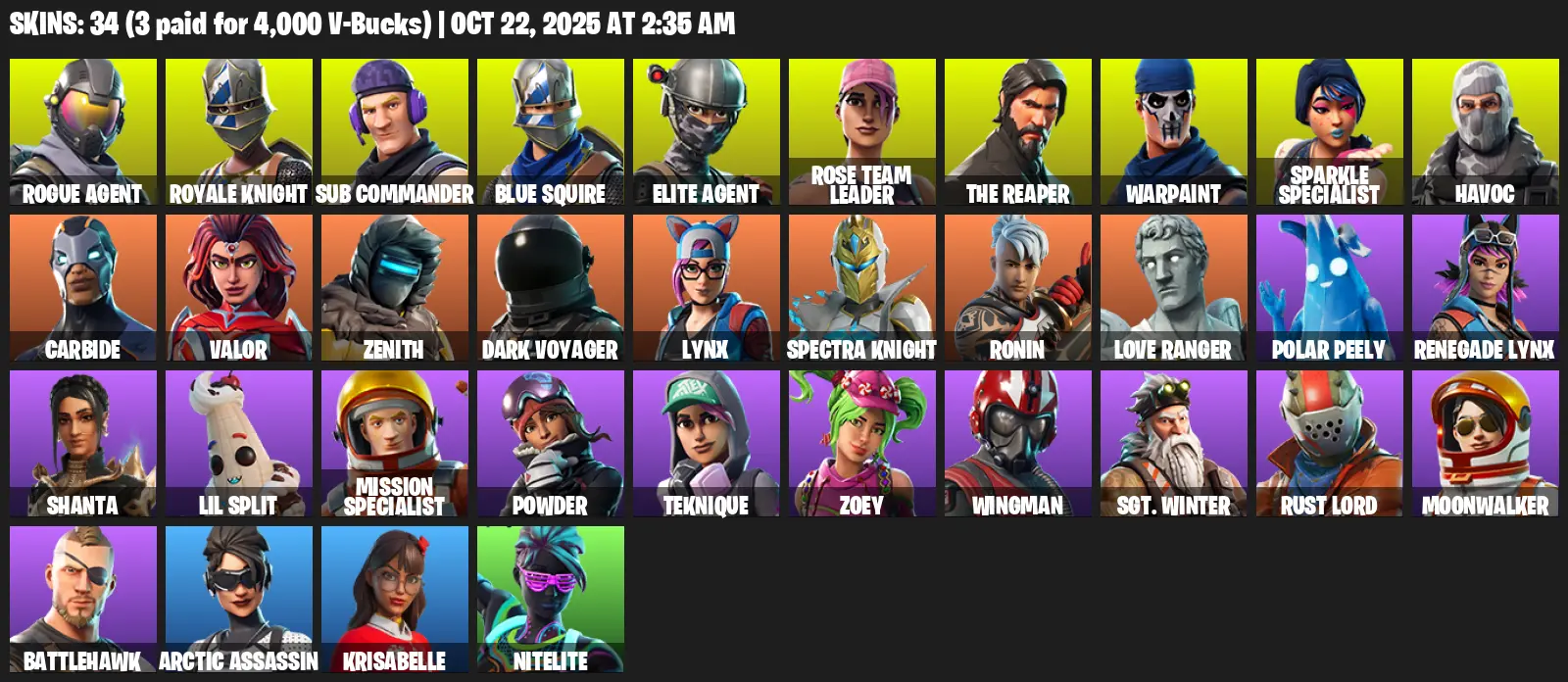 [PC/PSN/XBOX] | 34 skins | 825 V-bucks | Floss | Take The L | OG STW | Sparkle Specialist | Royale Knight | The Reaper | Elite Agent | S4G