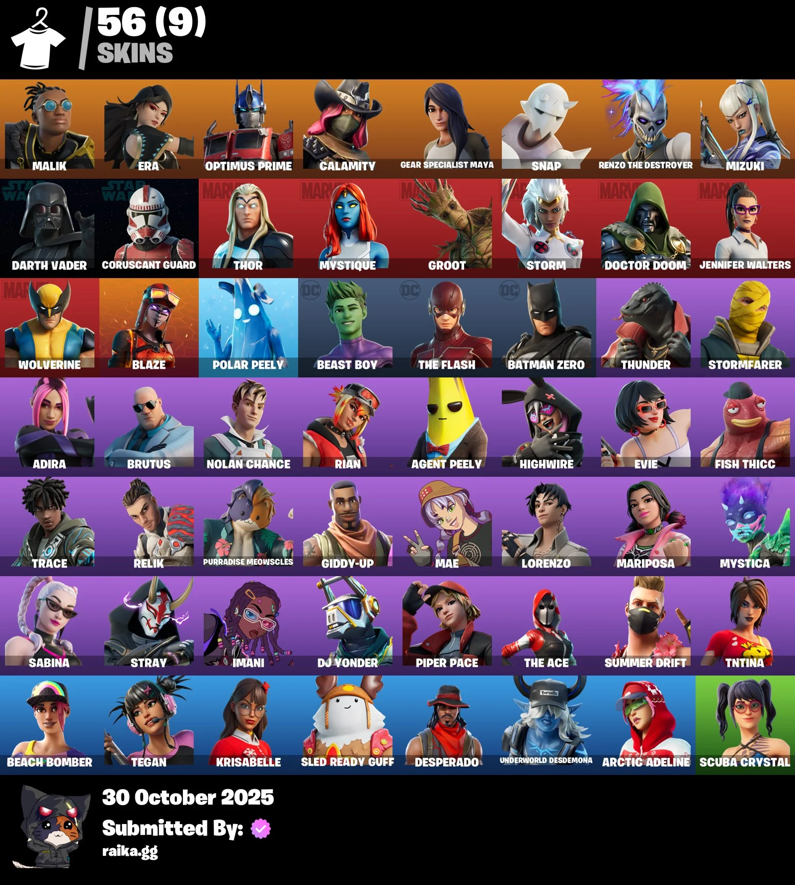 [PC/PSN/XBOX] 56 skins | Malik | Era | Optimus Prime | Calamity | Gear Specialist Maya | Snap | Renzo the Destroyer | Mizuki | Darth Vader | Coruscant Guard | 250 VB