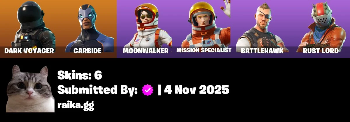 [PC/PSN/XBOX] 6 skins | Dark Voyager | Carbide | Moonwalker | Mission Specialist | Battlehawk | Rust Lord | Rust Bucket | Clawz Retro | Spectra Protec