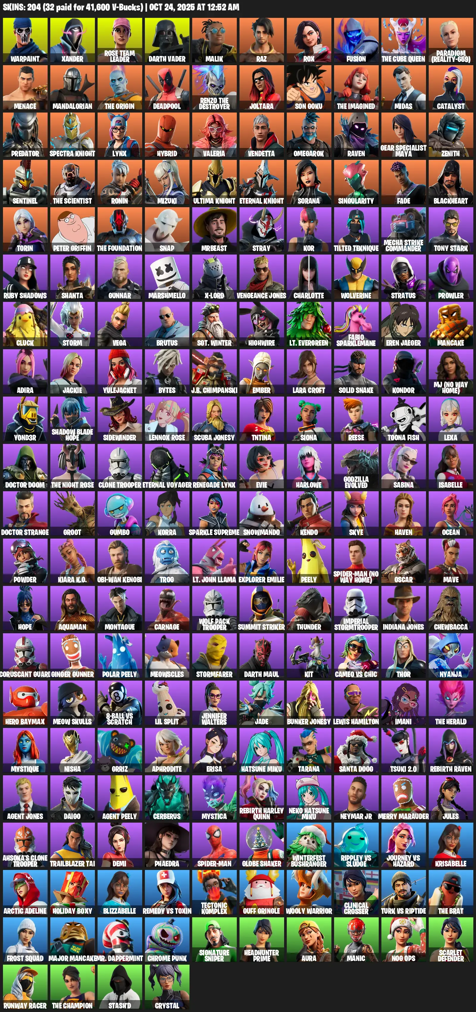[PC/PSN/XBOX] | 204 skins | OG STW | Lara Croft | Warpaint | Xander | Rose Team Leader | Darth Vader | Malik | Raz | Rox | Fusion | #TSL3715 | #MBFN