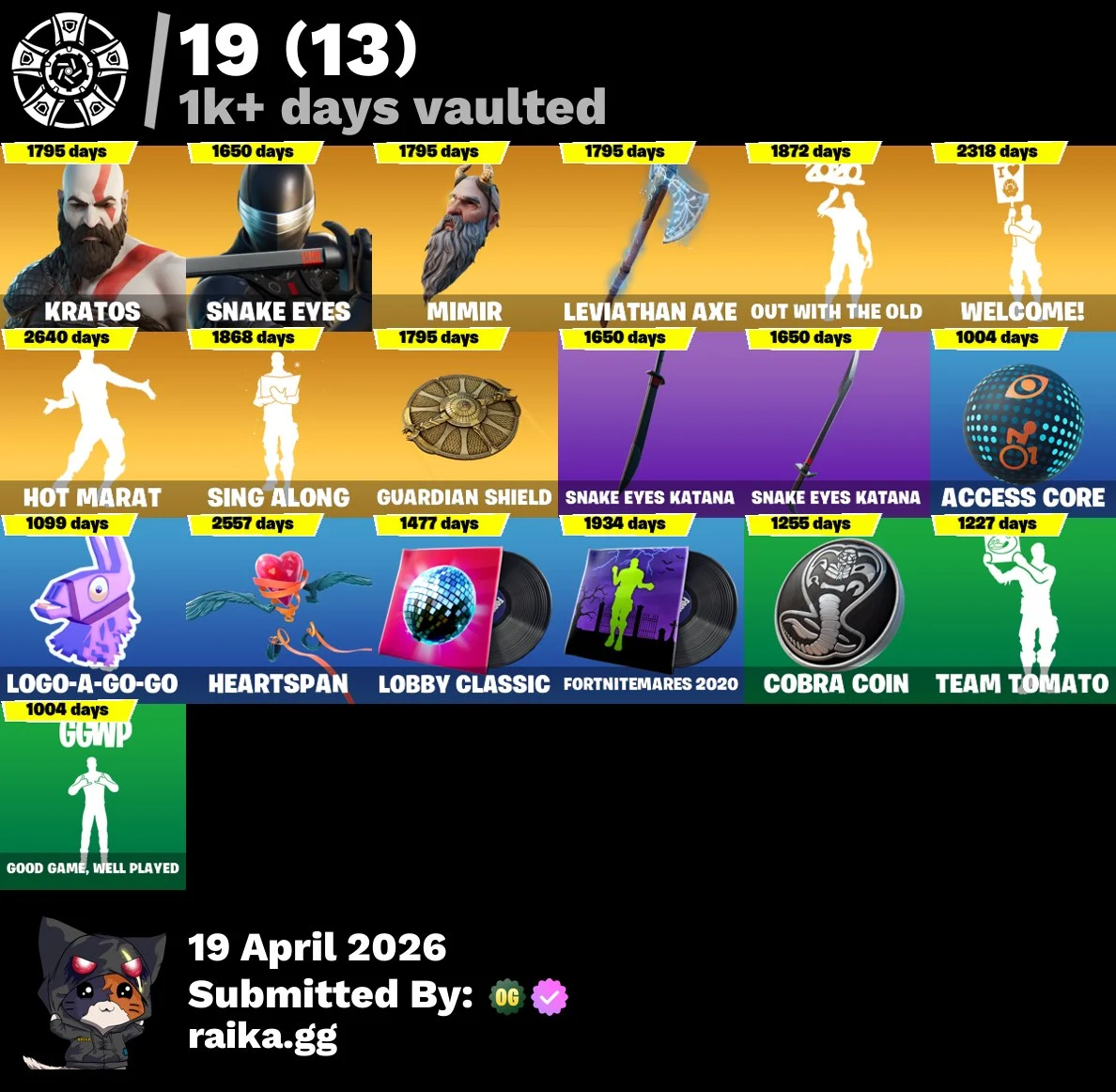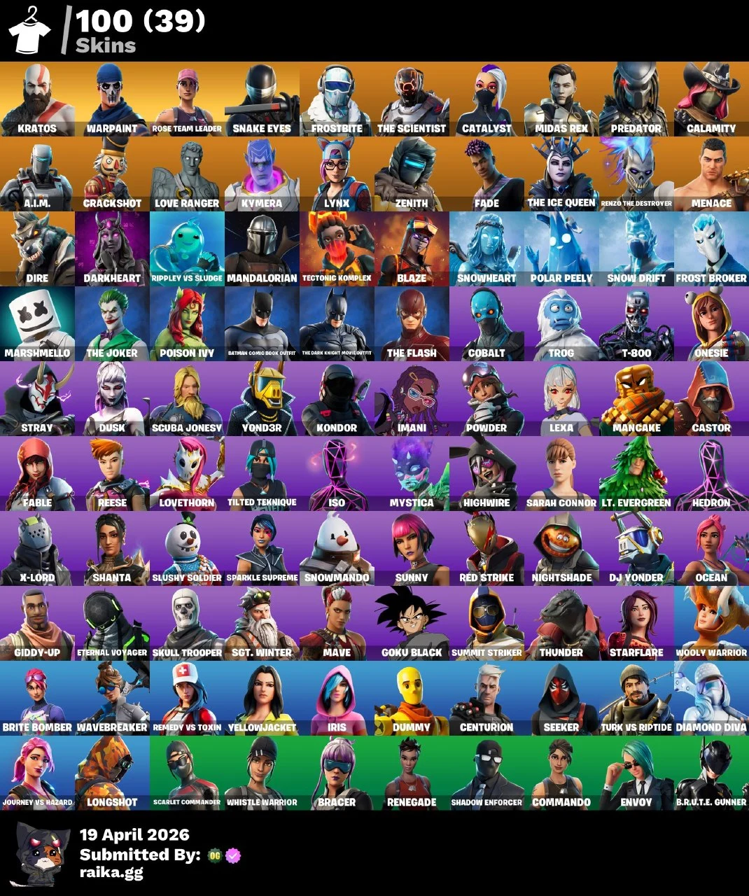 [PC/PSN/XBOX/Nintendo] 100 skins F/A : Leviathan Axe | OG STW | Kratos | Snake Eyes | Love Ranger | Midas Rex | Menace | Lynx | Predator | Catalyst | The Scientist | Fade | The Ice Queen