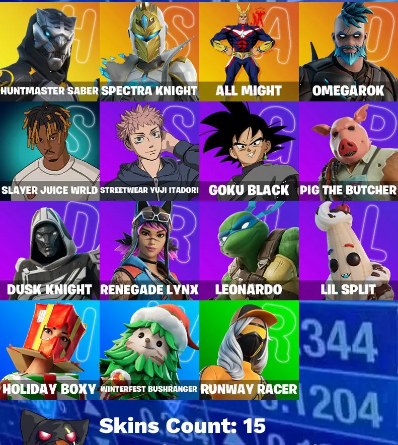 [PC/PSN/XBOX/SWITCH] 15 skins | Huntmaster Saber | Spectra Knight | All Might | Omegarok | Slayer Juice WRLD | Streetwear Yuji Itadori | Goku Black | 350 VB