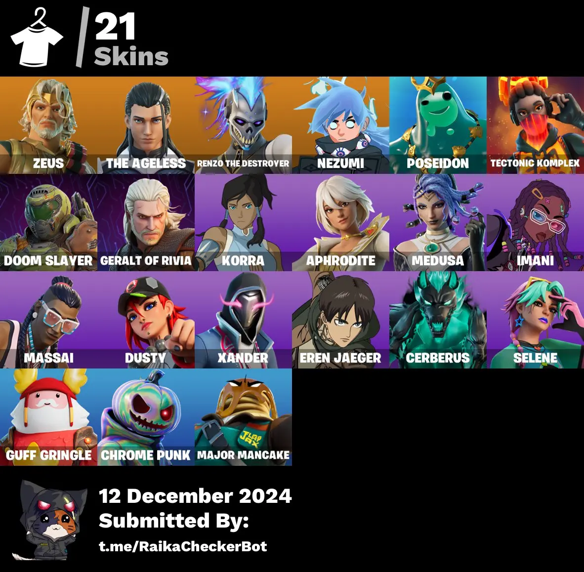 [PC/PSN/XBOX/SWITCH] 21 Skins | Zeus | The Ageless | Renzo | Poseidon | Doom Slayer | Korra | Geralt | MCF195