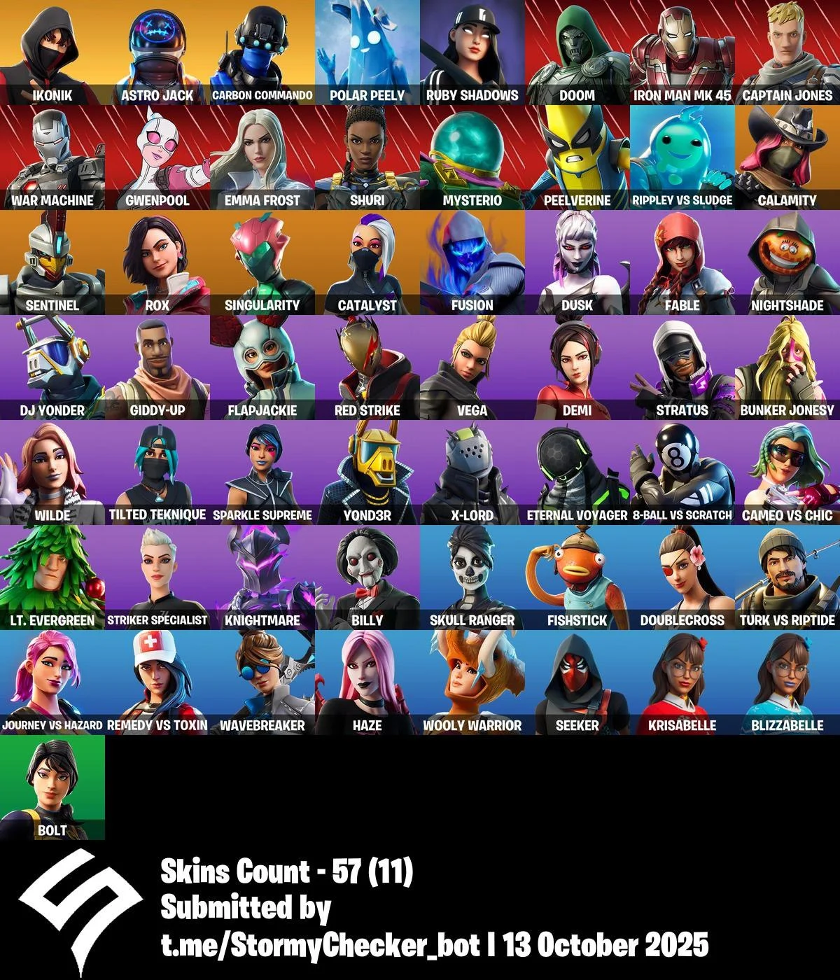 [PC/XBL] | 57 Skins | IKONIK | Astro Jack | Carbon Commando | Doom | Iron Man Mk 45 | Controller | Pneumatic Twin | Default Pickaxe | 950 VB