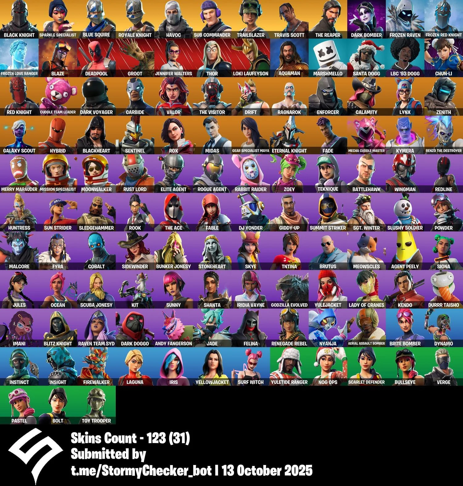 [PC/XBL/PSN] | 123 Skins | Black Knight | Sparkle Specialist | Blue Squire | Royale Knight | Havoc | Sub Commander | Trailblazer | Travis Scott | AC/DC | Instigator | Tenderizer | BRSeason1 | 450 VB