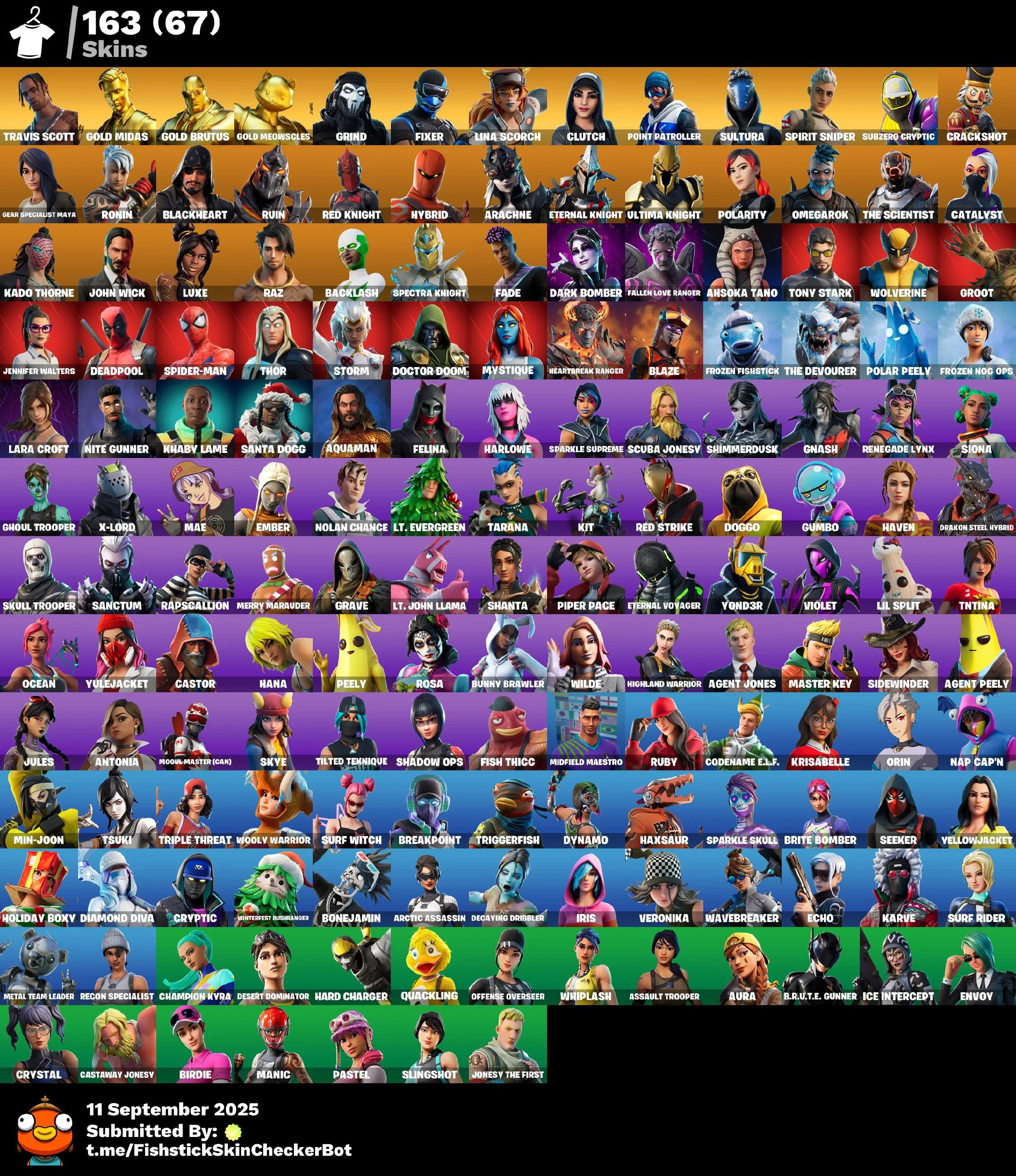 [PC/XBOX] 163 skins | Travis Scott | Gold Midas | Gold Brutus | Gold Meowscles | Grind | Fixer | Lina Scorch | Clutch | Point Patroller | Sultura | 400 VB K4
