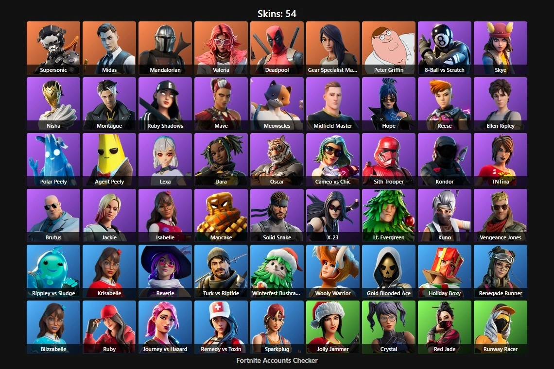 PC/XBOX 54 Skins⚡ | Midas | Deadpool | Supersonic | Mandalorian | Valeria | Gear Specialist Maya | Peter Griffin | 8-Ball vs Scratch | Skye | Nisha