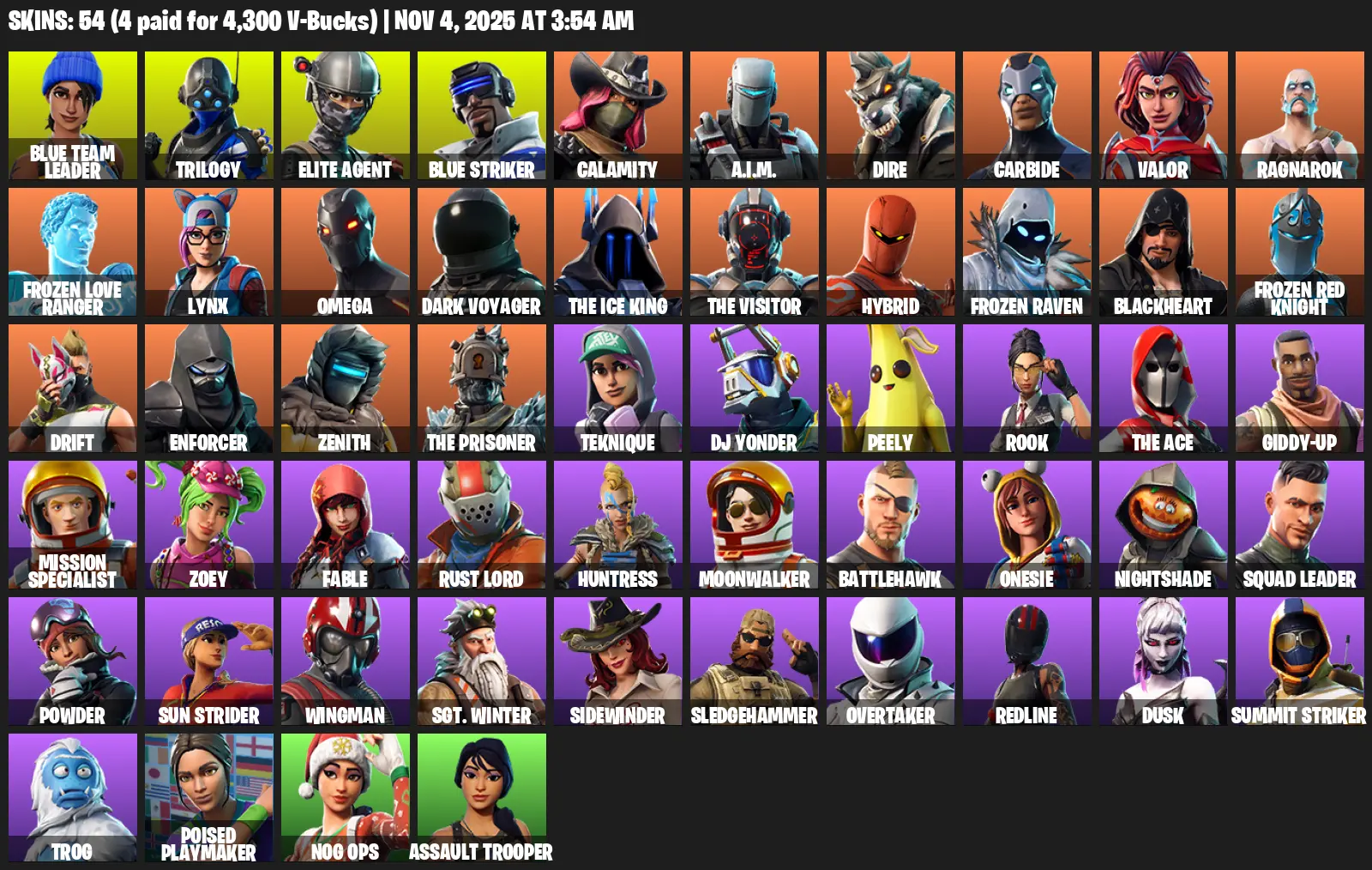 [PC/XBOX] | 54 skins | Take The L | Elite Agent | Omega | Reaper Axe | Blue Team Leader | Trilogy | Blue Striker | Calamity | #ZAN8215 | #MBFN