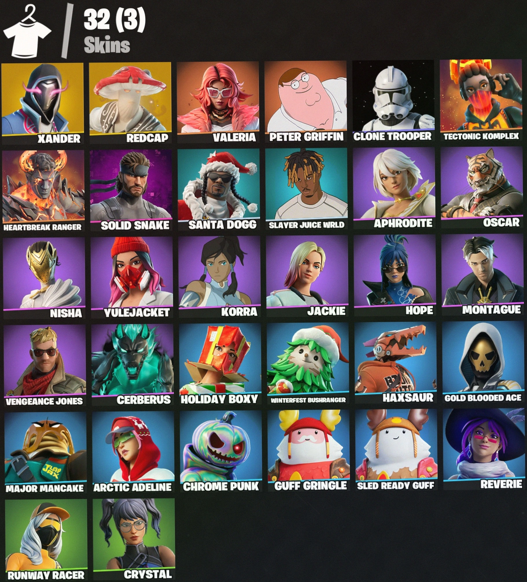 [PC/XBOX/PSN] 32 skins + 2 LEGENDARY Dances + Xander + Redcap + Valeria + Peter Griffin + Clone Trooper + Tectonic Komplex + 0 VB ⸱ PARENTAL CONTROL #CODE-169375