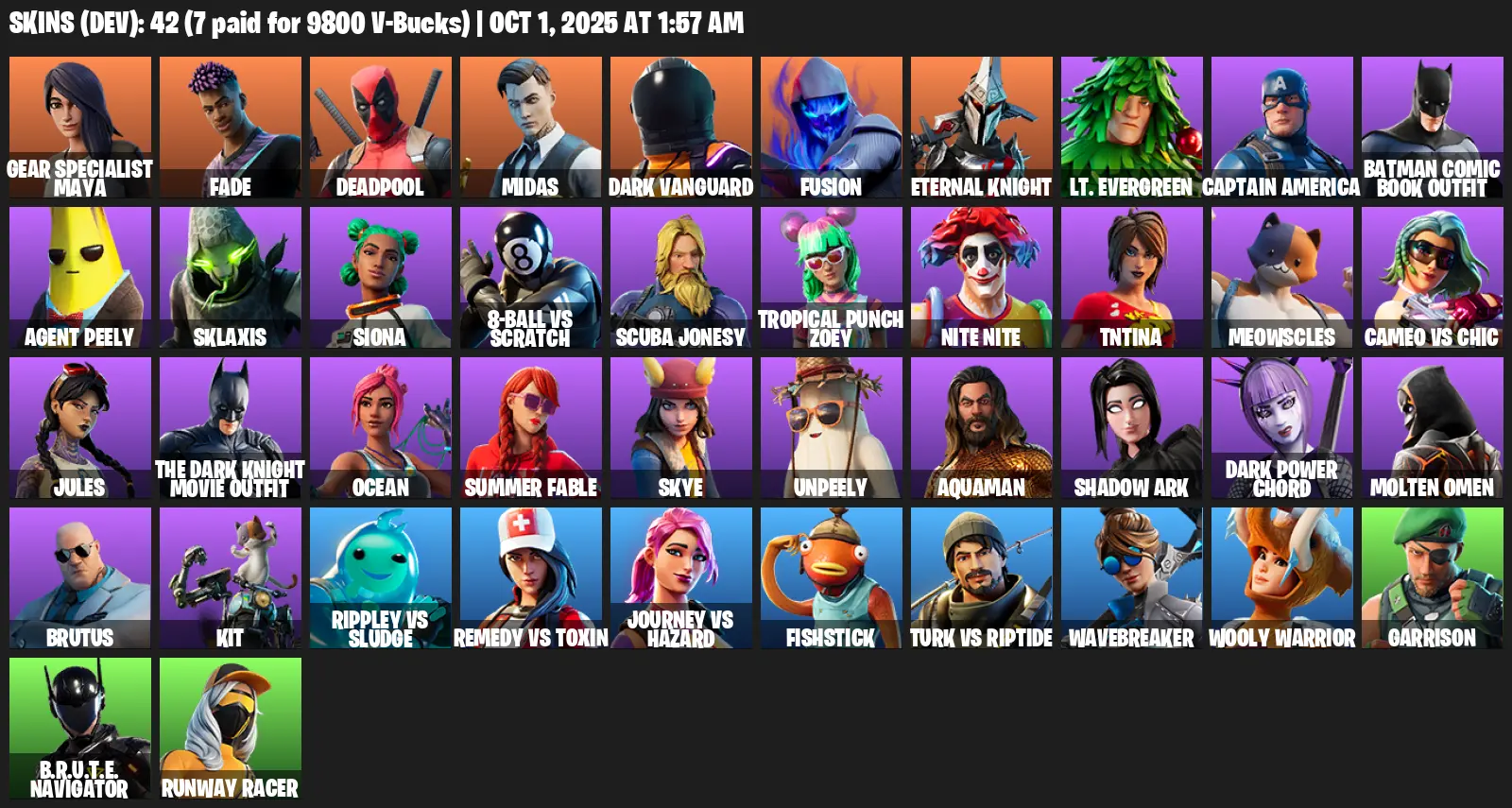 PC/XBOX/PSN 42 Skins⚡ | Deadpool | Midas | Gear Specialist Maya | Fade | Dark Vanguard | Fusion | Eternal Knight | Lt. Evergreen | Captain America
