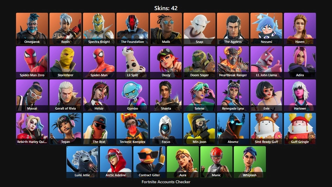 PC/XBOX/PSN 42 Skins⚡ | Omegarok | Ronin | Spectra Knight | The Foundation | Malik | Snap | The Ageless | Nezumi | Haven | Spider-Man Zero | Stormfarer