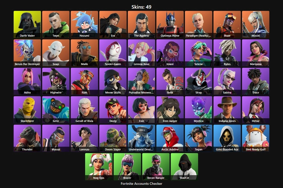 PC/XBOX/PSN 49 Skins⚡ | Darth Vader | Twyn | Nezumi | Era | The Ageless | Optimus Prime | Paradigm (Reality-659) | Blaze | Mizuki | Renzo the Destroyer
