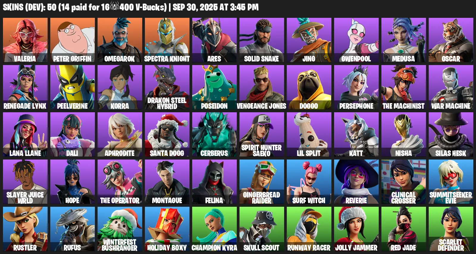 PC/XBOX/PSN 50 Skins⚡ | Valeria | Peter Griffin | Omegarok | Spectra Knight | Ares | Solid Snake | Jing | Gwenpool | Medusa | Oscar | Renegade Lynx