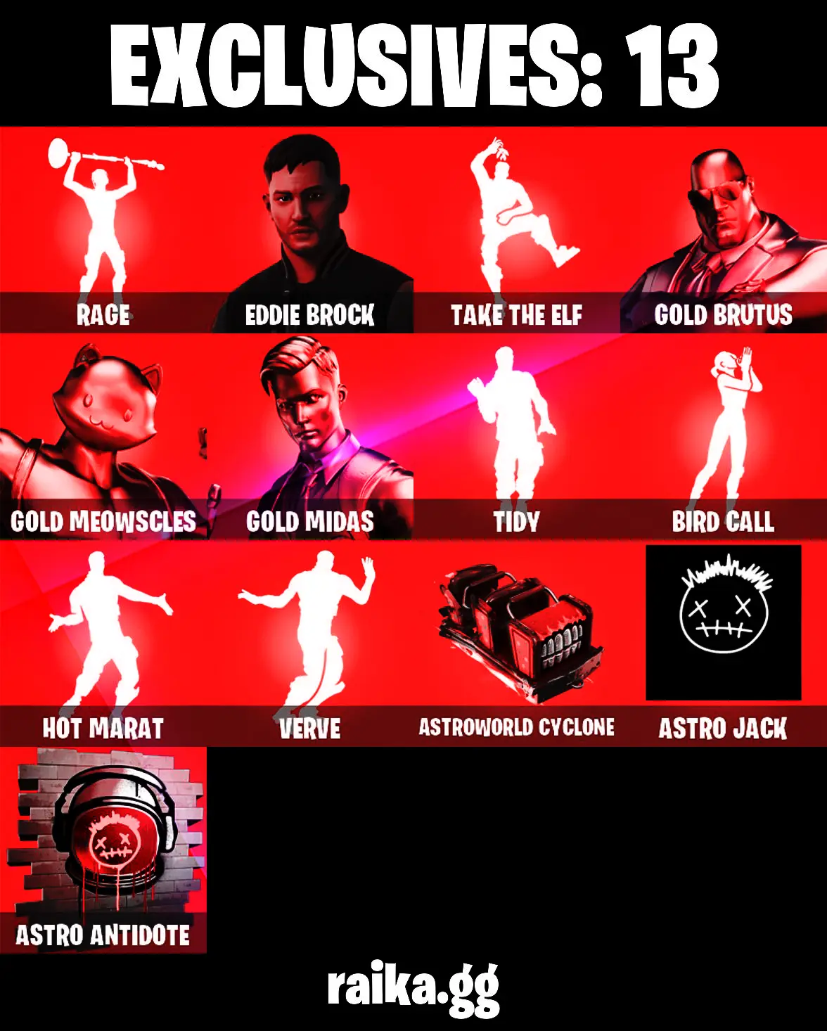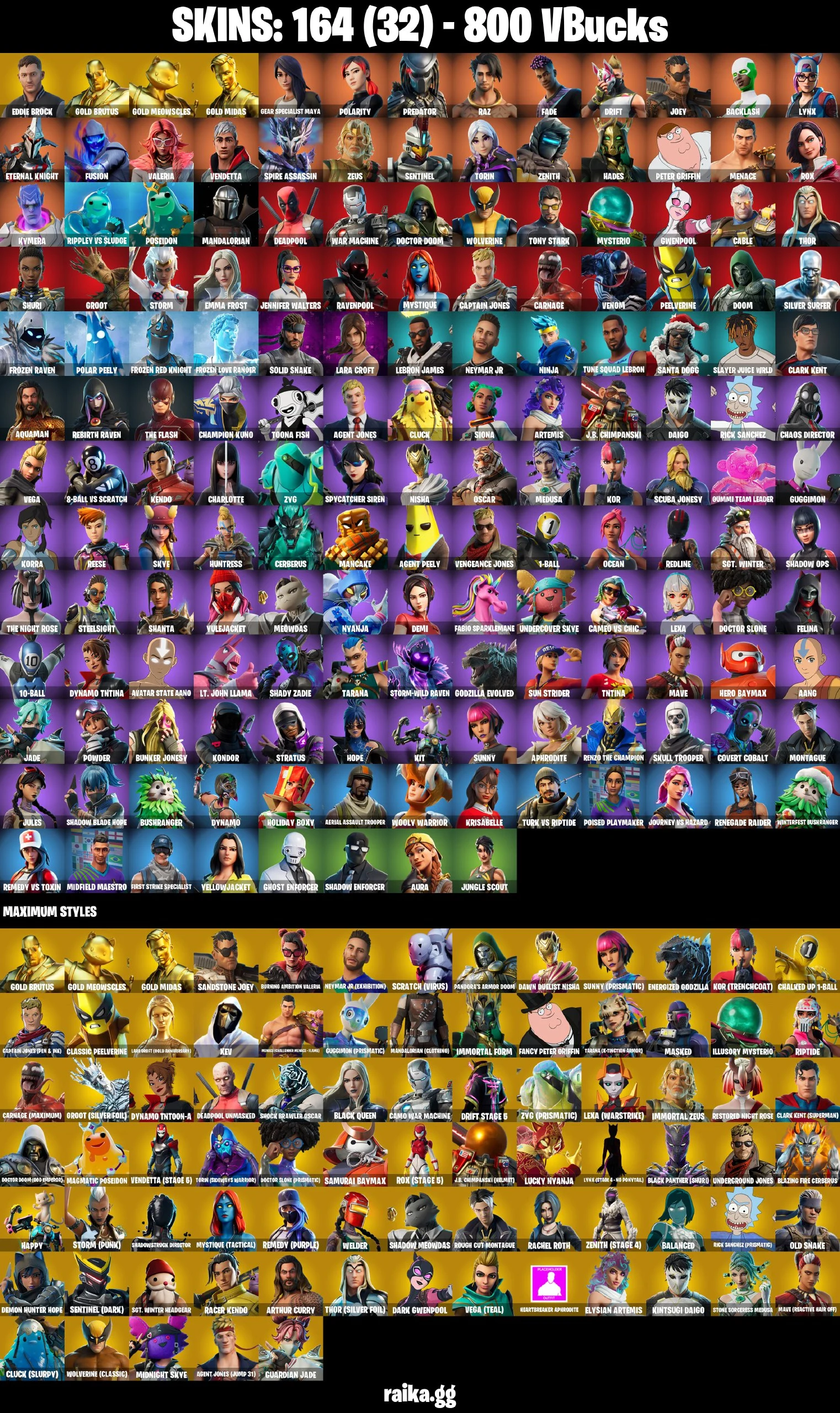 🎁✨RARE STACKED✨🎁 164 SKINS 🌙 RAGE 🌙 RAIDERS REVENGE 🌙 AERIAL ASSAULT TROOPER 🌙 AGENT PEELY 🌙 EDDIE BROCK 🌙 TONY STARK 🌙 SKULL TROOPER 🌙 RENEGADE RAIDER 🌙 GOLD BRUTUS 🌙 GOLD MEOWSCLES 🌙 GOLD MIDAS 🌙 800 VBUCKS ⚡️PC/PSN/XBOX⚡️