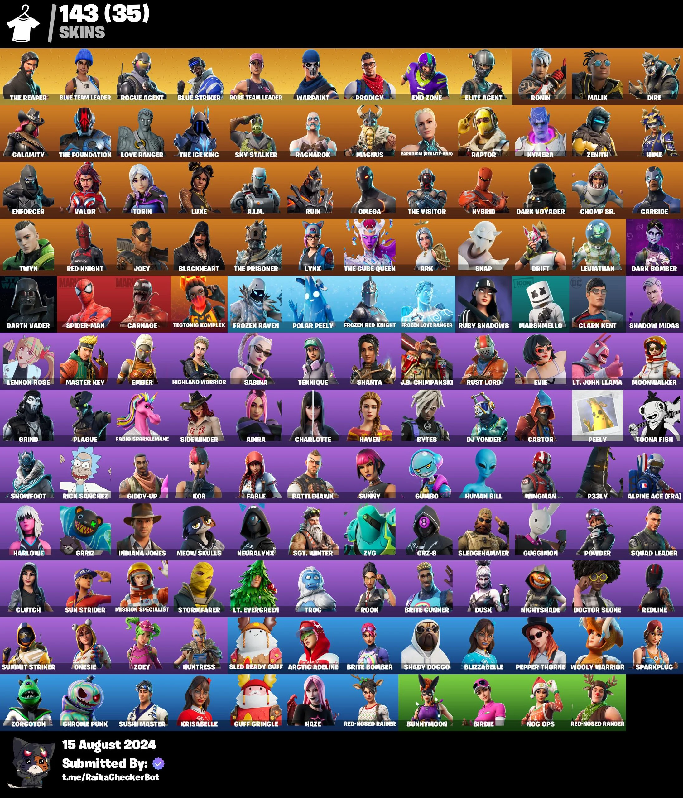 🔥🍀 SPRING OFFER 🍀🔥 143 Skins 💎 The Reaper 💎 Og Stw 💎 End Zone 💎 Prodigy 💎 Rogue Agent 💎 Blue Team Leader 💎 Take The L 💎 Orange Justice 💎 Candy Axe 💎 Widows Bite 💎 Raptor 💎 Love Ranger 💎 Arctic Adleine 💎 Haze 💎 Peely 💎 Full Access 💎 PC\PSN\XBOX\SWITCH 💎