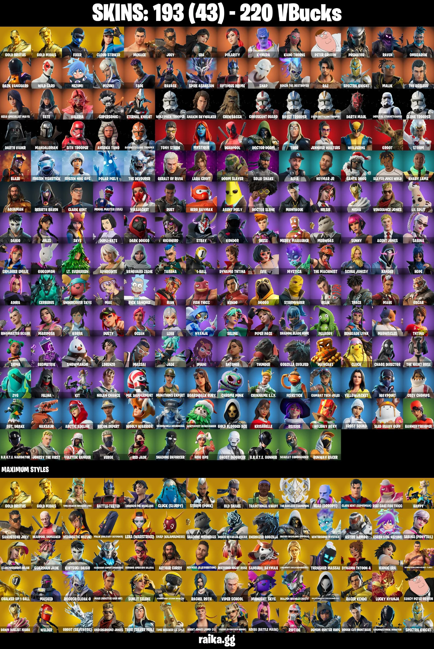 🎁✨STACKED OG ACCOUNT✨🎁 193 SKINS 🌙 RAGE 🌙 AGENT PEELY 🌙 TONY STARK 🌙 GOLD BRUTUS 🌙 GOLD MIDAS 🌙 FIXER 🌙 CLOUD STRIKER 🌙 MENACE 🌙 JOEY 🌙 ERA 🌙 POLARITY 🌙 KYMERA 🌙 KADO THORNE 🌙 PETER GRIFFIN 🌙 220 VBUCKS ⚡️PC/PSN/XBOX⚡️