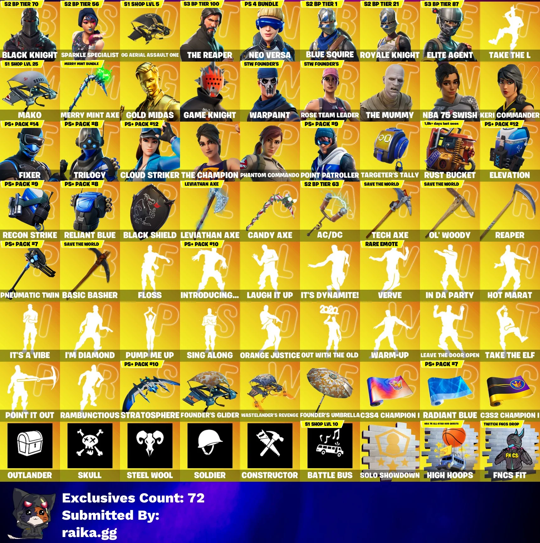 SUPREME COLLECTON🔥 [PC / PSN / XBOX] 423 SKINS 🕹️ OG STW 💥 RENEGADE RAIDER ⭐ AERIAL ASSAULT TROOPER 🔥 BLACK KNIGHT 💥 SPARKLE SPECIALIST 🕹️ THE REAPER ⭐ NEO VERSA 🔥 BLUE SQUIRE 💥 200 VB