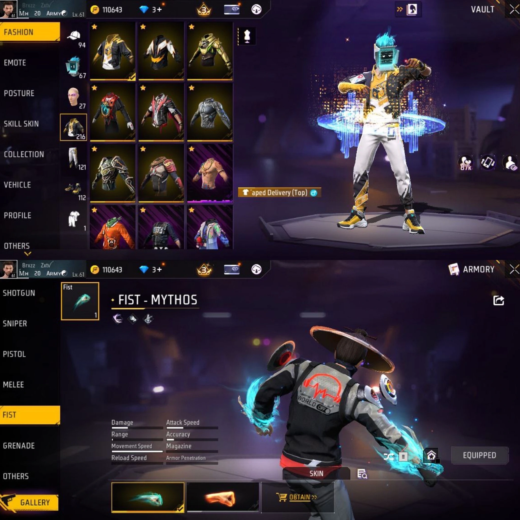 #CrazyDeal 60+ Lvl | 2 Evos | Vault 215+ Taped Delivery, Cursed Magician Ancient Glory Blodding Lad Bundles | 23 Emotes | Gun skins : Futuristic Scar, Etc (Region: India)