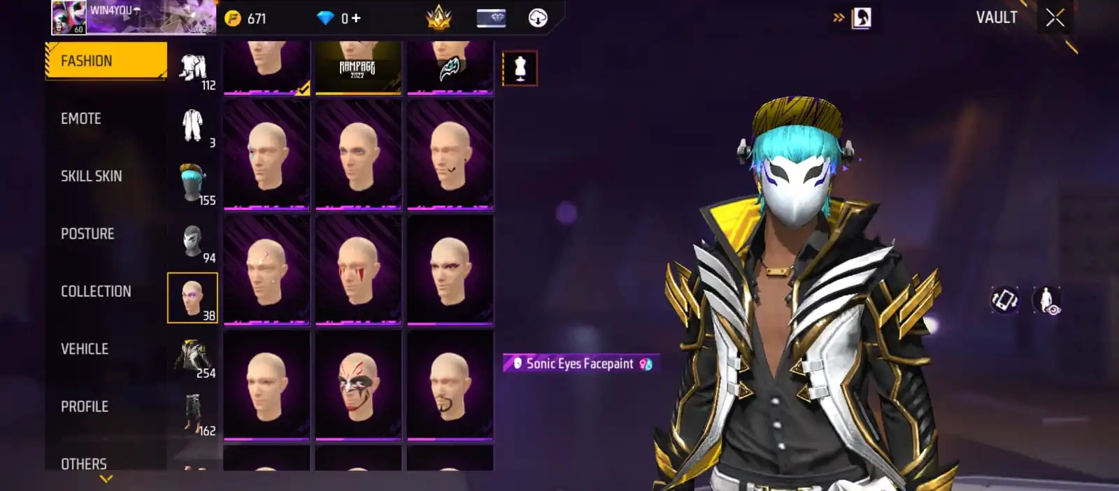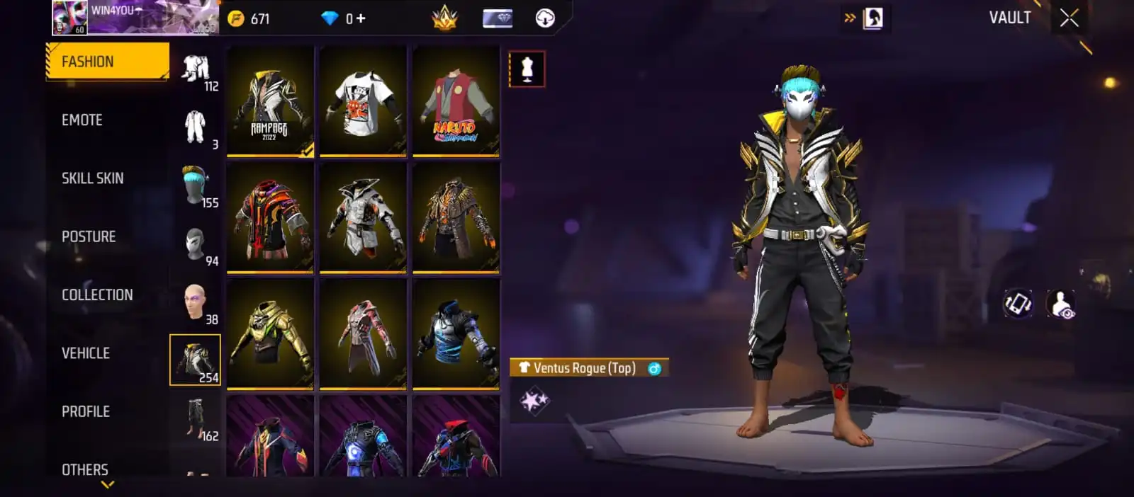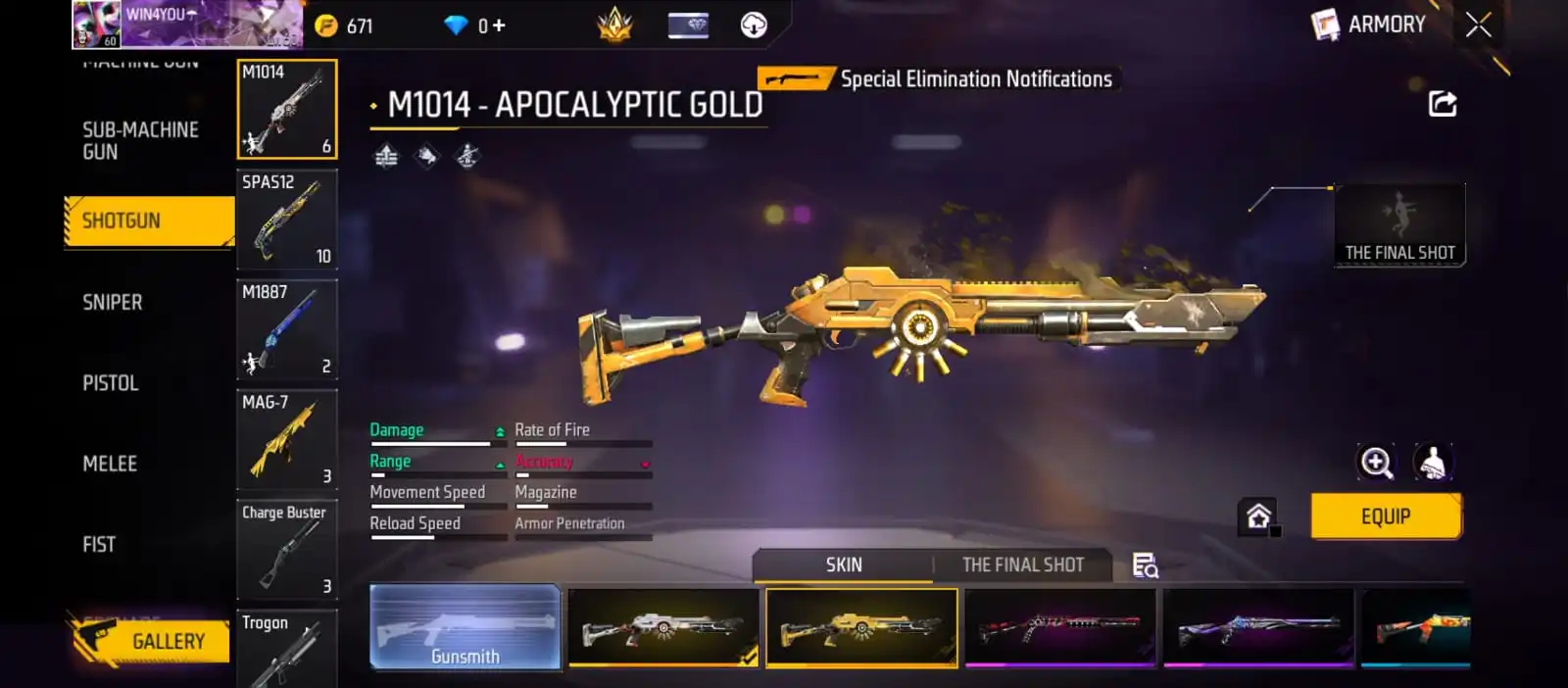 V34|LVL60|254COSTUME(13MYTHIC)|297WEAPON(1EVO+60MYTHIC)|PREDATORYCOBRA-MP40LVL6|APOCALYPTICGOLD-M1014|MIDNIGHTKNUCKLES-FIST