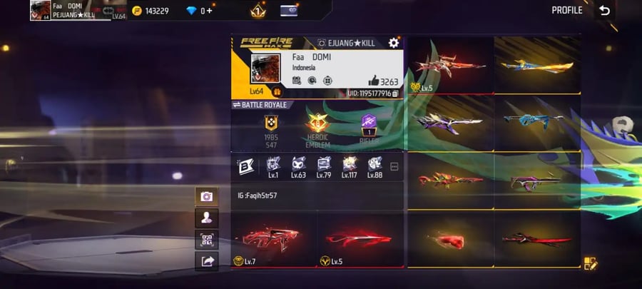 X107|Lvl 58|5 PET|38 CHARACTER|60 BUNDLE SET|CRAZY PANDA BUNDLE|158 COSTUME(3 MYTHIC)|143 WEAPON(22 MYTHIC)|VENOM M4A1|GOLDEN STRIKE SCAR