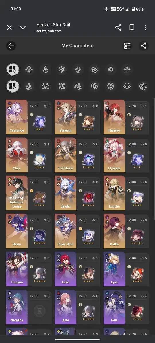 50% OFF 🤯 110x5 all combined asia all meta characters + lauma just pulled very well maintained and built characters, farmable account, hsr 14x5 ⸱ genshin 96x5